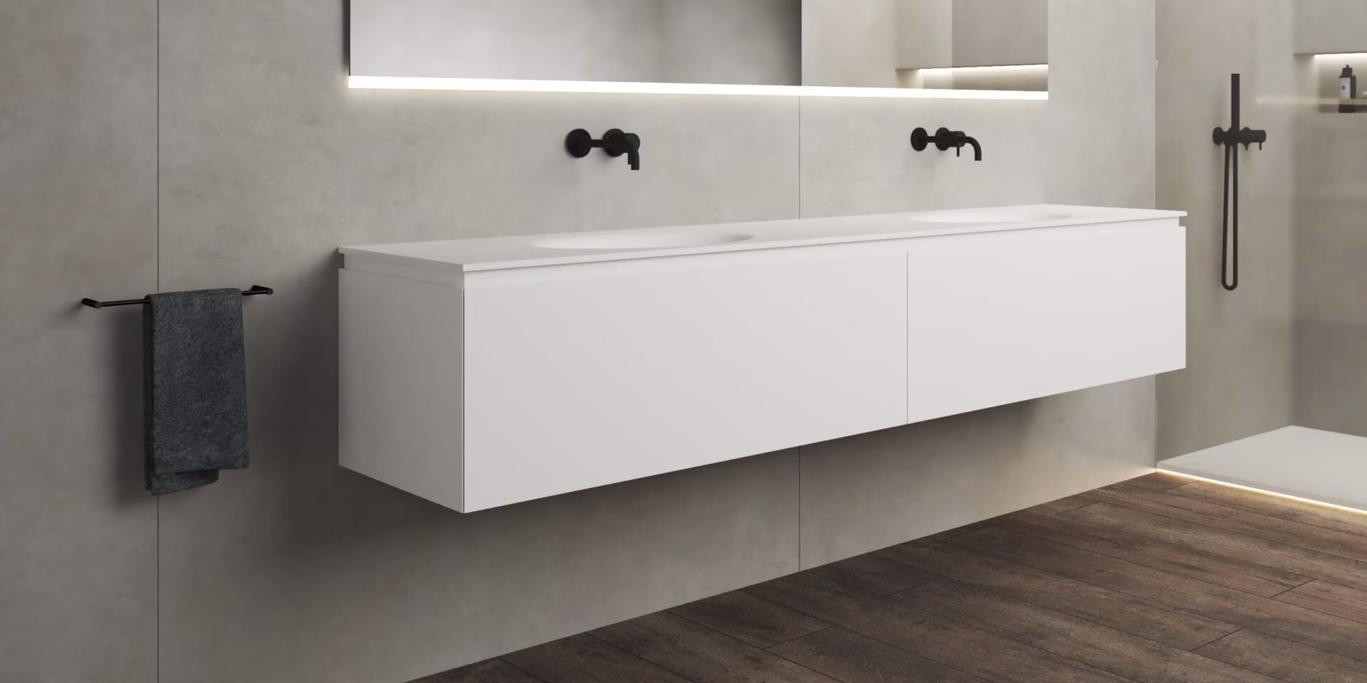 B DUTCH Sorrento Badkamermeubel 2300, 230 cm, Solid Surface Corian