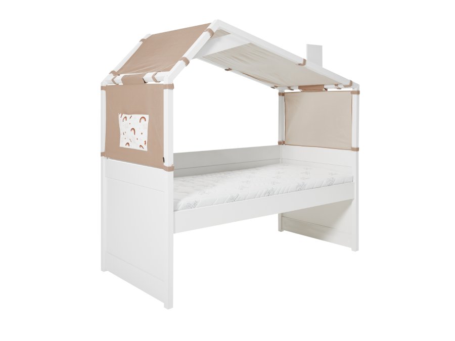 Dit bed is beschikbaar in verschillende varianten. Er zijn andere thema’s, een ander soort tipi dak en verschillende hoogtes. Dit is de hoogste variant. De bedbank is iets lager waardoor er twee brede lades onder passen. Het gewone bed is nog iets lager en hier past een grote slaaplade onder. Bekijk hier alle Cool Kids producten.