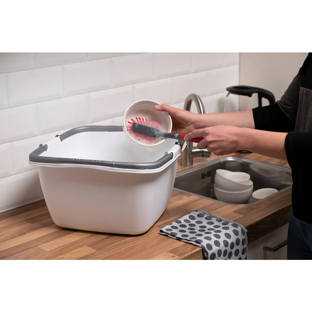 De nieuwe Dirt Devil afwasborstel met zacht handvat is de ideale metgezel voor al uw afwasbehoeften. Met zijn levendige rode kleur voegt deze borstel een vleugje stijl toe aan uw keukenaccessoires. Het zachte handvat maakt het schoonmaken van vaat een stuk comfortabeler, zelfs na langdurig gebruik. Het hoogwaardige kunststof materiaal garandeert duurzaamheid en zorgt ervoor dat de borstel bestand is tegen dagelijks gebruik, zonder in te boeten aan effectiviteit. Met een lengte van 35 cm is deze afwasborstel perfect voor het reinigen van grote pannen, borden en meer, terwijl hij toch gemakkelijk in uw hand ligt voor een goede grip en controle.
