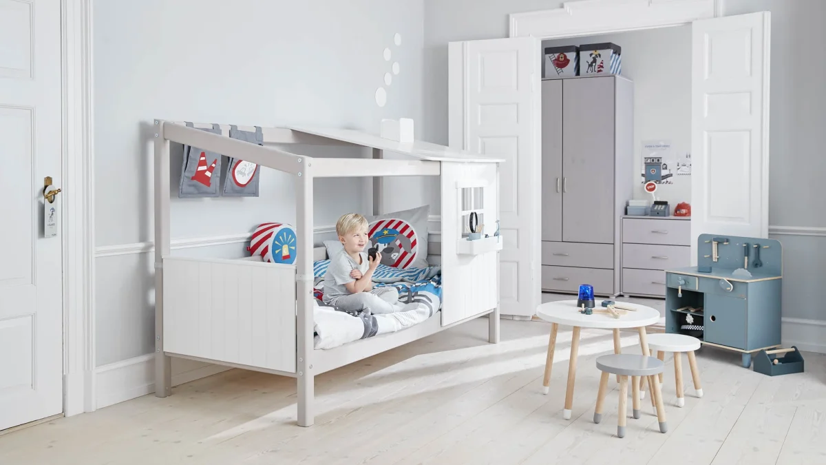 Ontdek het Flexa Classic 1/2 huisbed in de kleur greywash . Dit super leuke bed bestaat uit een standaard bed met huis panelen en een frame er op gemonteerd. Hierdoor ontstaat een prachtige plek om te slapen én te spelen.