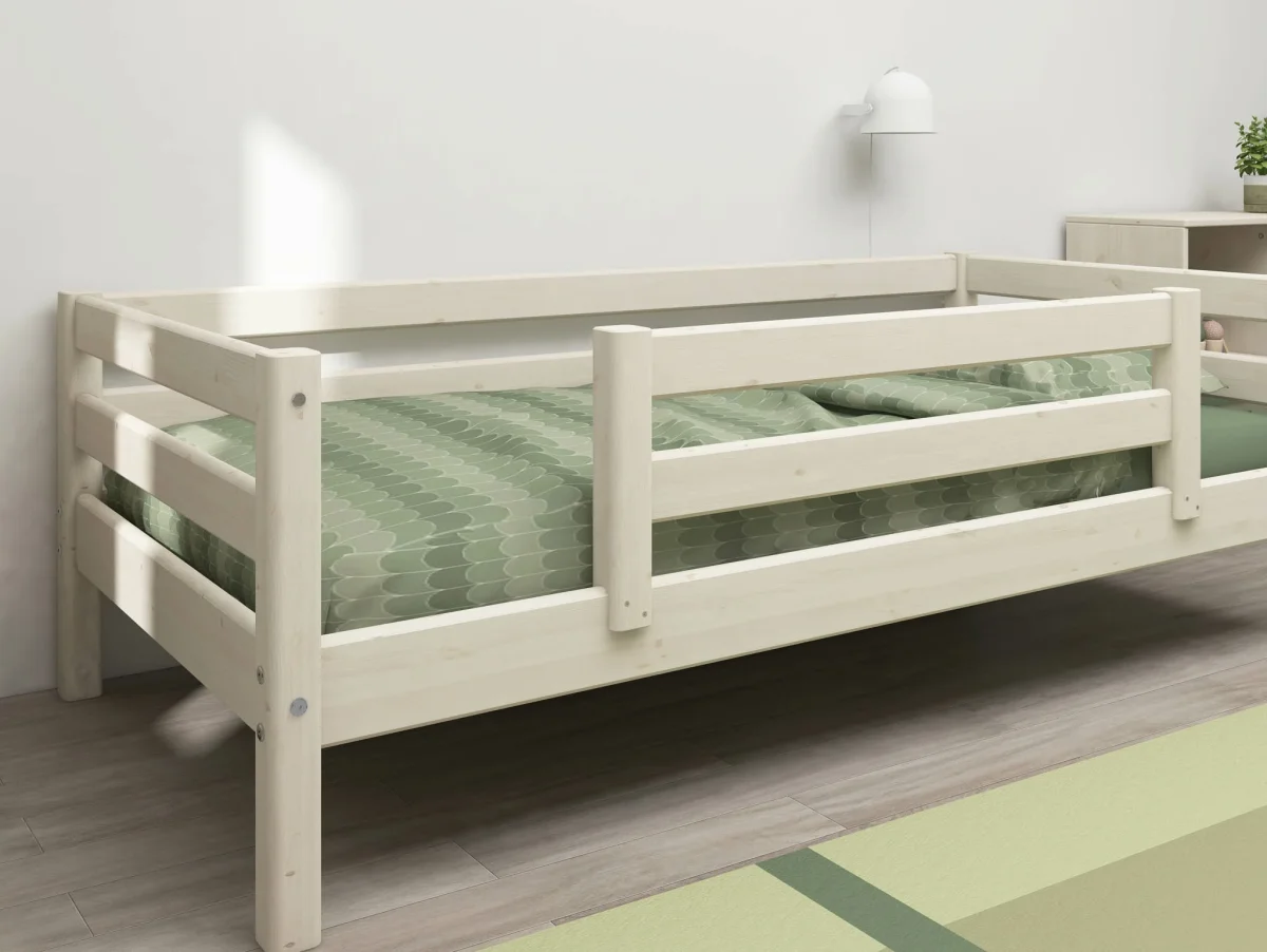 De Flexa Classic bedbank in whitewash met gecentreerde uitvalbeschermer is een prachtige keuze voor kinderen die hun ledikant zijn ontgroeid. Dit bed combineert comfort, veiligheid en tijdloos design op een uitstekende manier.