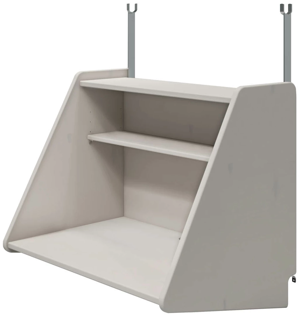 Het Flexa Click-on bureau met plank is de ideale aanvulling voor Classic hoogslapers in de kleur greywash. Creëer een comfortabele studeerplek onder de hoogslaper door dit bureau toe te voegen. Het bureau is voorzien van een handig plankje waarop je kleine spulletjes kunt plaatsen, waardoor je een georganiseerde werkruimte hebt. Gemaakt van duurzaam massief grenenhout en MDF, biedt dit bureau zowel functionaliteit als stijl in de kinderkamer.