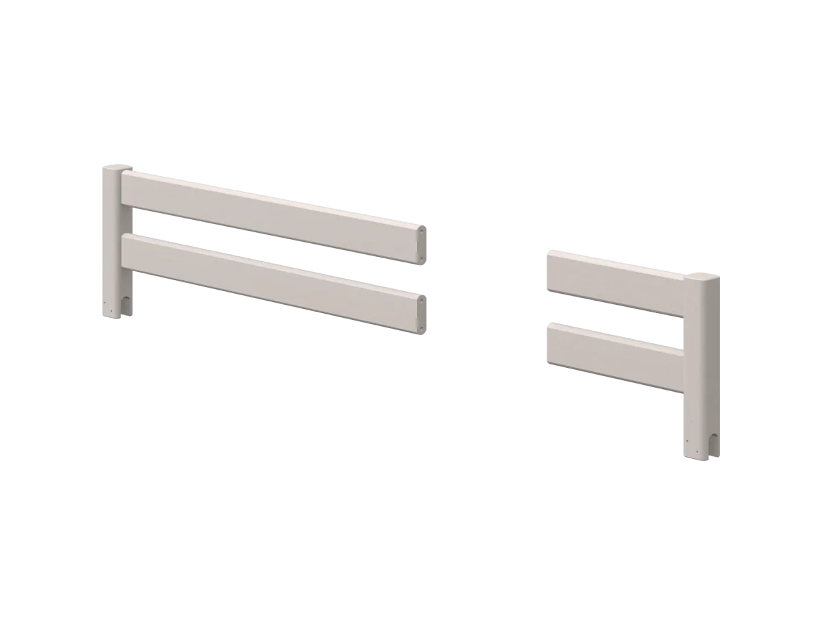 Deze Flexa Classic opgedeelde uitvalbeschermer in de kleur Greywash beslaat ongeveer 3/4 deel van de lengte van het bed. Maar de opening zit niet helemaal aan één kant. Hierdoor kun je deze goed gebruiken voor hoog bed met een platformladder met/zonder glijbaan. Ook past er een rechte of schuine ladder tussen. Uiteraard ook als losse uitvalbeschermer te gebruiken.