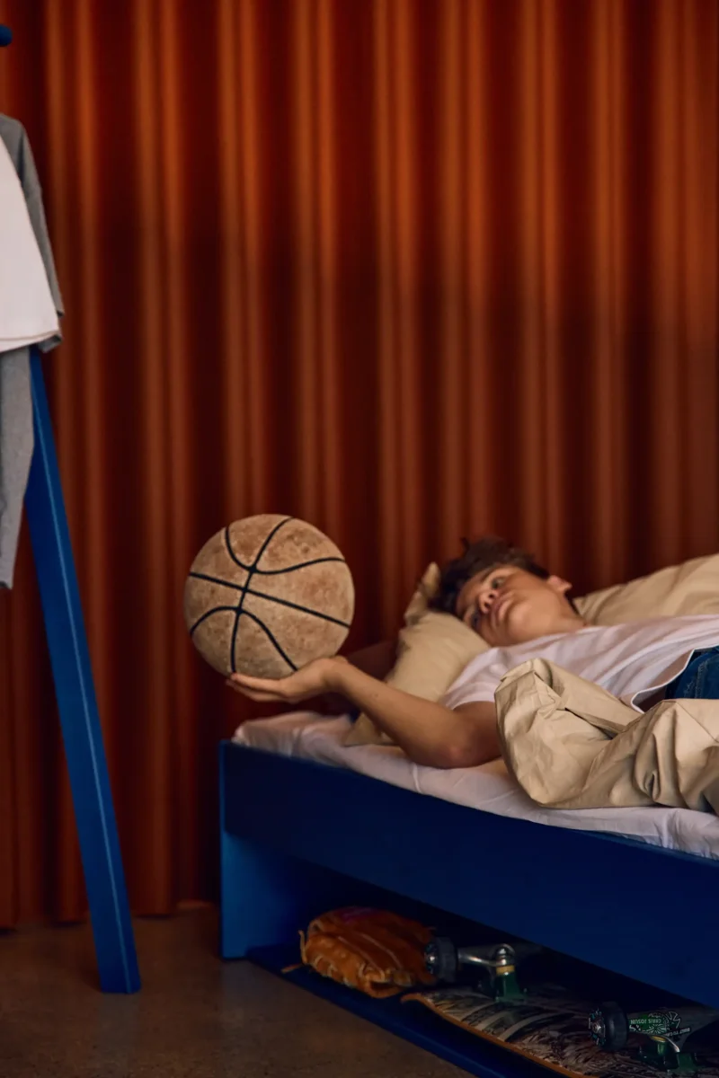 De twijfelaar uit de Grow collectie van Flexa biedt meer dan alleen een plek om te slapen. Zo zit er onder het bed een plank waarop je spullen gemakkelijk binnen handbereik kunt neerleggen. Het bed is afgewerkt met de prachtige kleur Sapphire Blue. Er is ook een bijpassend kledingrek beschikbaar.