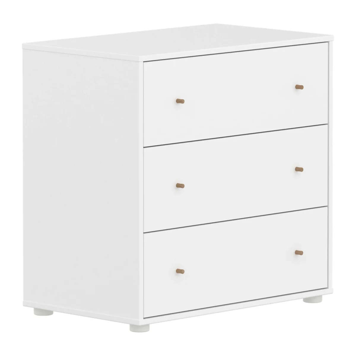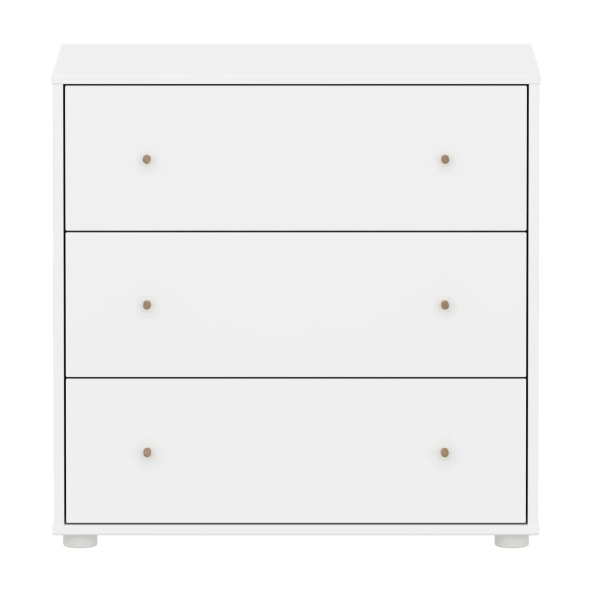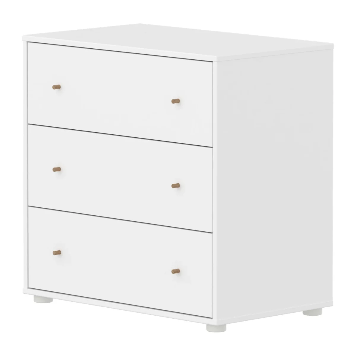 De ladenkast met 3 lades kan onder onze halfhoge bedden worden geplaatst voor een efficiënte benutting van de ruimte in de kinderkamer. De ronde eikenhouten knoppen voegen een eenvoudig en strak designelement toe.
