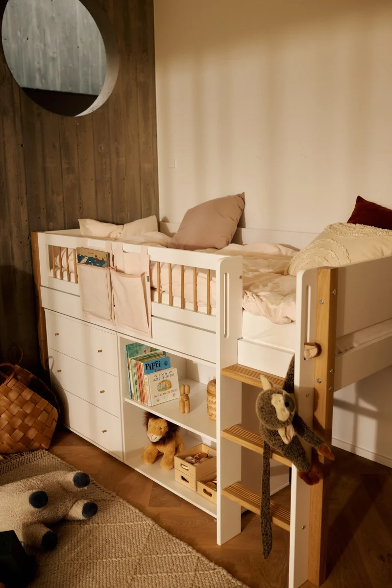 De Saga-opbergcollectie is geïnspireerd door de ongerepte natuur van de westkust van Denemarken en biedt een tijdloos ontwerp met een blijvende relevantie, die naadloos aansluit bij onze bestaande bedsystemen en een samenhangende en geïntegreerde uitstraling geeft aan elke kinderkamer.