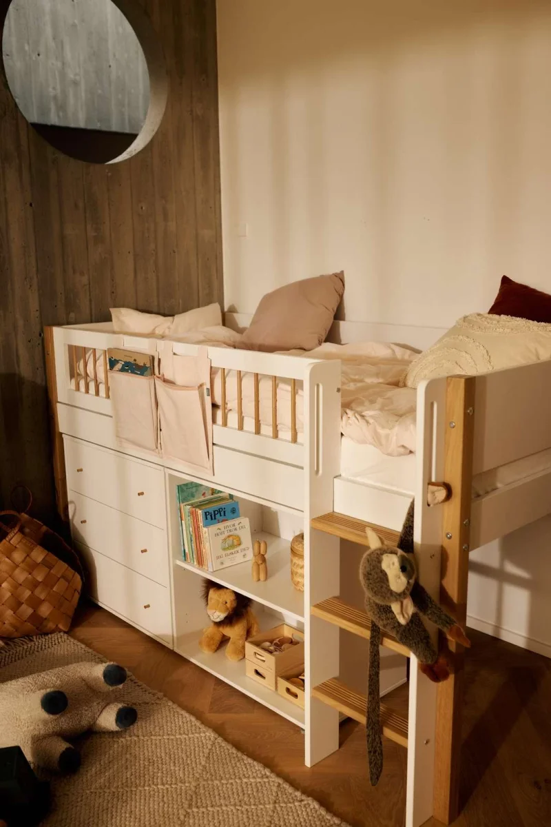 De kast is gemaakt van FSC®-gecertificeerd MDF, wat garant staat voor duurzaamheid en robuustheid. De lak is vrij van schadelijke stoffen, wat zorgt voor een veilige en gezonde omgeving voor kinderen. De Saga-collectie voldoet aan de strengste EU-veiligheidsnormen.