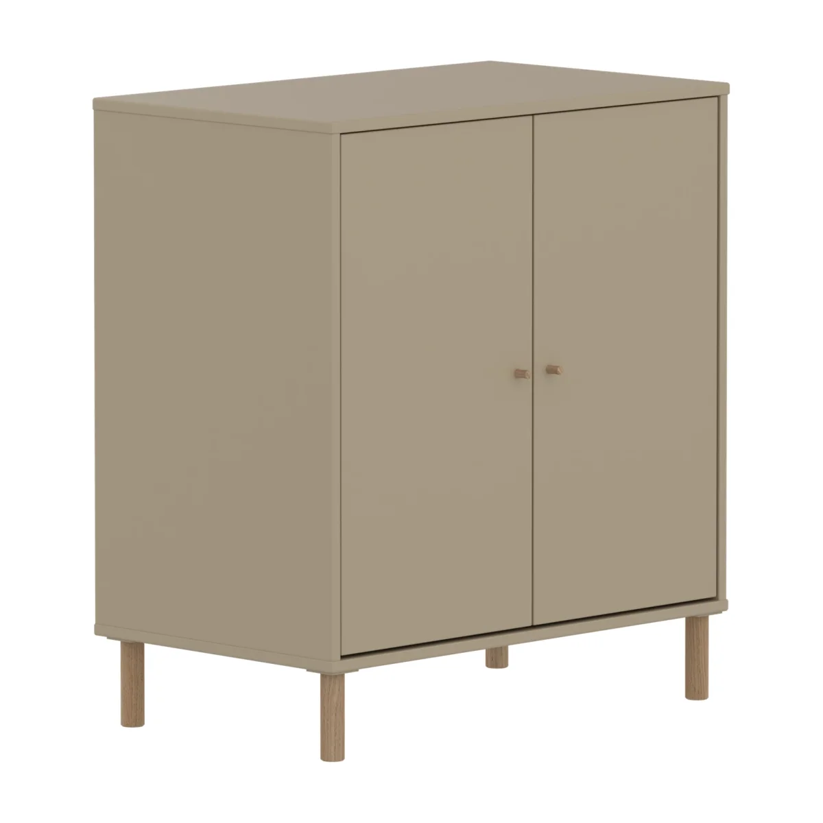De Flexa Saga kast in Oat heeft 1 verstelbare plank en 2 deuren met soft-close, wat zorgt voor extra veiligheid voor kinderhanden. De ronde eikenhouten knoppen geven een strak en eenvoudig ontwerp. Deze kast met plastic poten past perfect onder onze halfhoge bedden en is ideaal voor kleinere kamers.