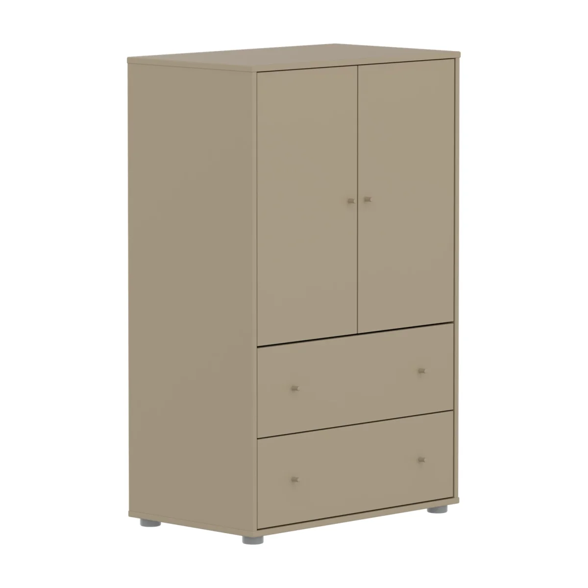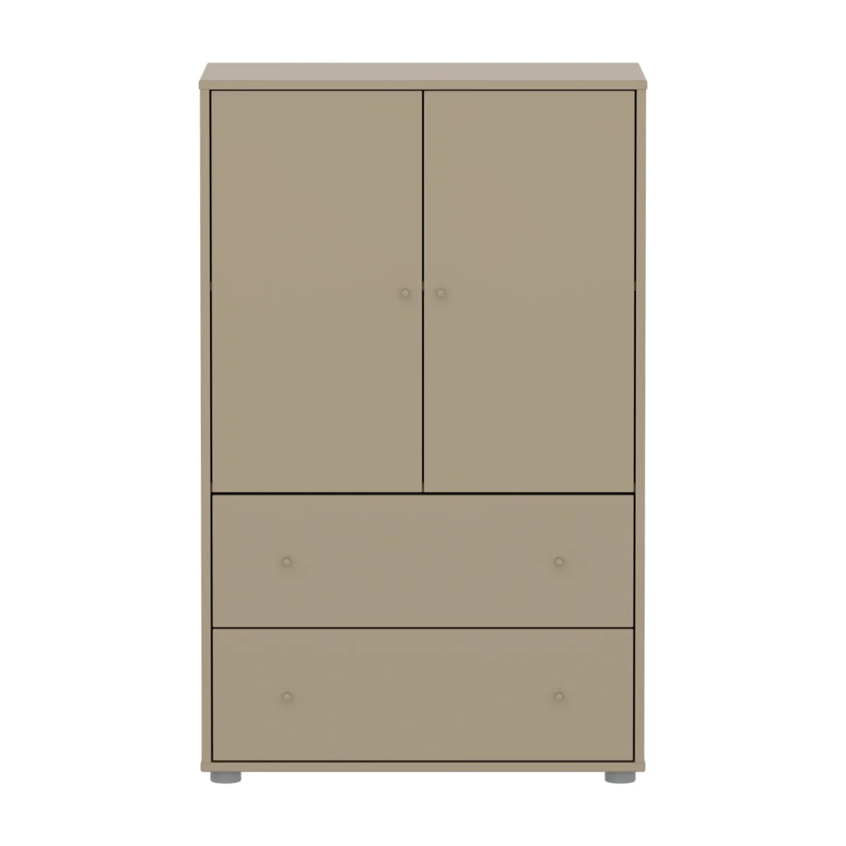De Flexa Saga Kast heeft 2 deuren, 2 lades en 1 verstelbare plank. De soft-close deuren en lades beschermen kleine vingers, terwijl de ronde Oat knoppen een elegante en eenvoudige nordische uitstraling geven.