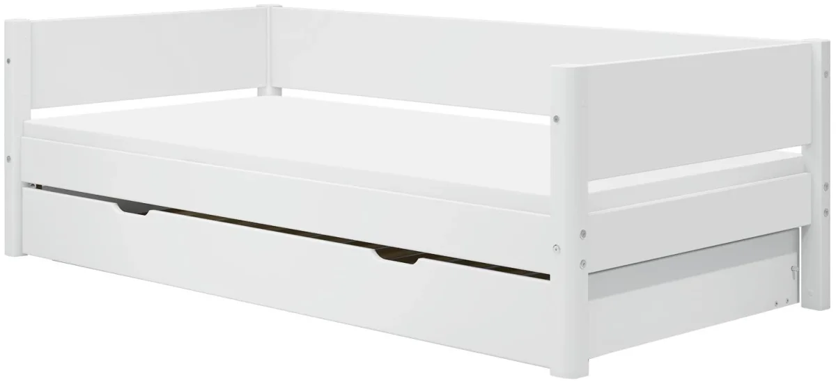 De Flexa White bedbank met onderschuifbed biedt de ultieme oplossing voor logeerpartijtjes en extra slaapruimte. Met het handige uitschuifbare logeerbed, dat is uitgerust met ingebouwde metalen poten, wordt gastvrijheid eenvoudig en comfortabel. Dit logeerbed kan op dezelfde hoogte als de bedbank worden geplaatst, waardoor een groot slaapoppervlak ontstaat.