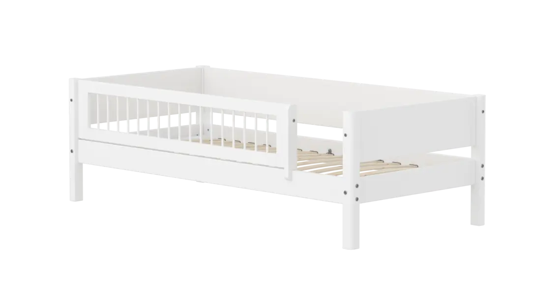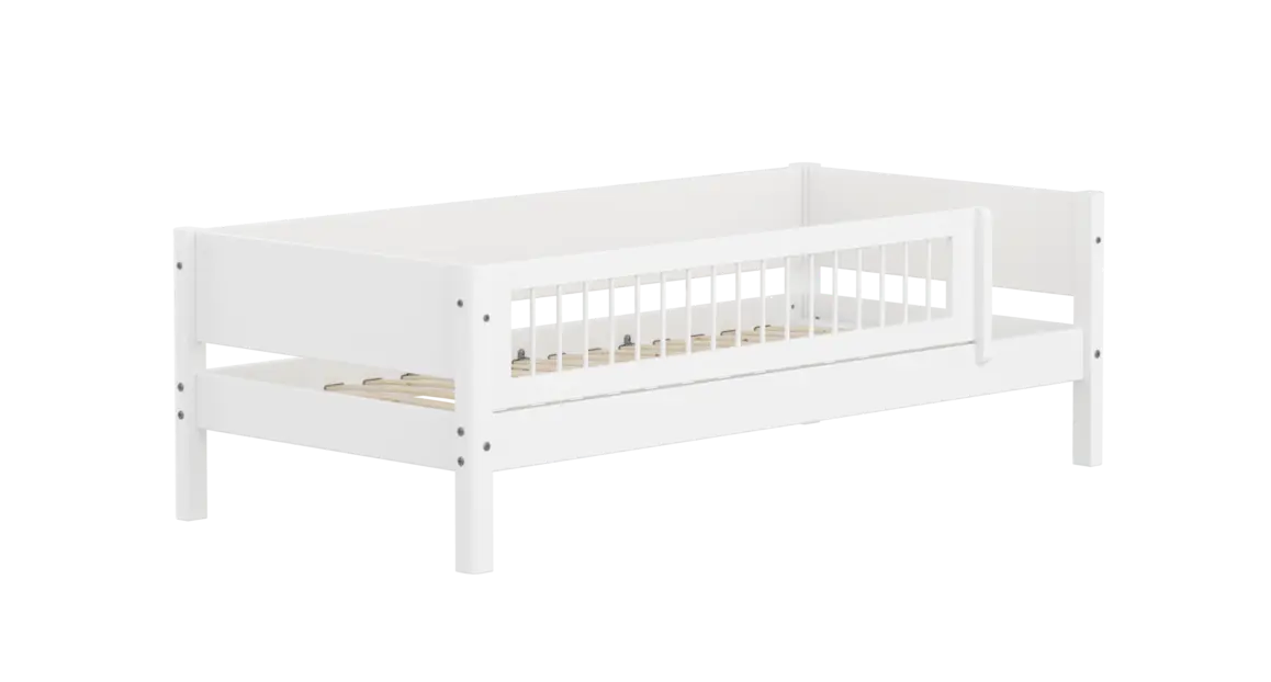 Als je kind de uitvalbeveiliging niet langer nodig heeft, is deze eenvoudig te verwijderen. De Flexa White-collectie is een flexibel bedsysteem dat met je kind meegroeit. Je kunt de bedbank eenvoudig ombouwen tot een halfhoogslaper (optioneel met glijbaan), een hoogslaper met een bureau eronder, of zelfs een gezellig stapelbed – perfect om tegemoet te komen aan de veranderende behoeften van kinderen van alle leeftijden.