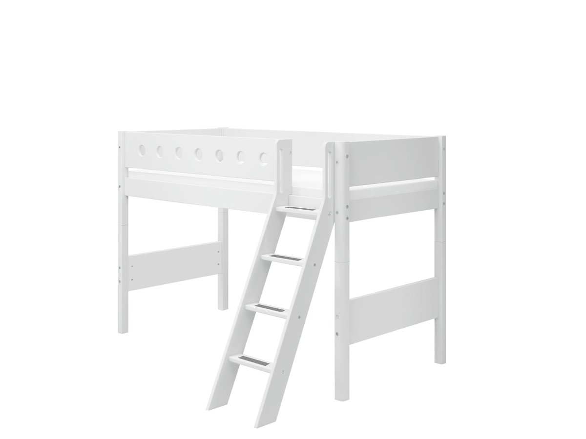 Maak kennis met de Flexa White verhoogde halfhoogslaper met schuine ladder – dit bed is maar liefst 23 cm hoger dan de gewone halfhoogslaper, waardoor er meer ruimte ontstaat om te spelen of spulletjes op te bergen onder het bed.