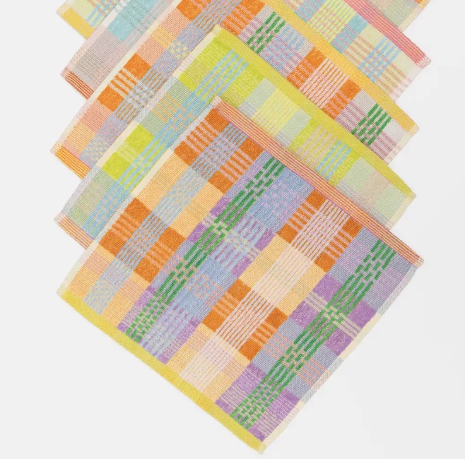 Odds & Ends kleurrijke keuken en theedoeken gemaakt van restafval uit de textielindustrie. In de textiel industrie wordt vaak meer garen geproduceerd dan nodig, voor het geval dat, vaak wordt dit niet meer gebruikt. The Odds & Ends keuken en theedoeken van Foekje Fleur zijn ontworpen uit deze ‘left overs’, het resultaat is een oneindige creativiteit en onverwachte kleurcombinaties.