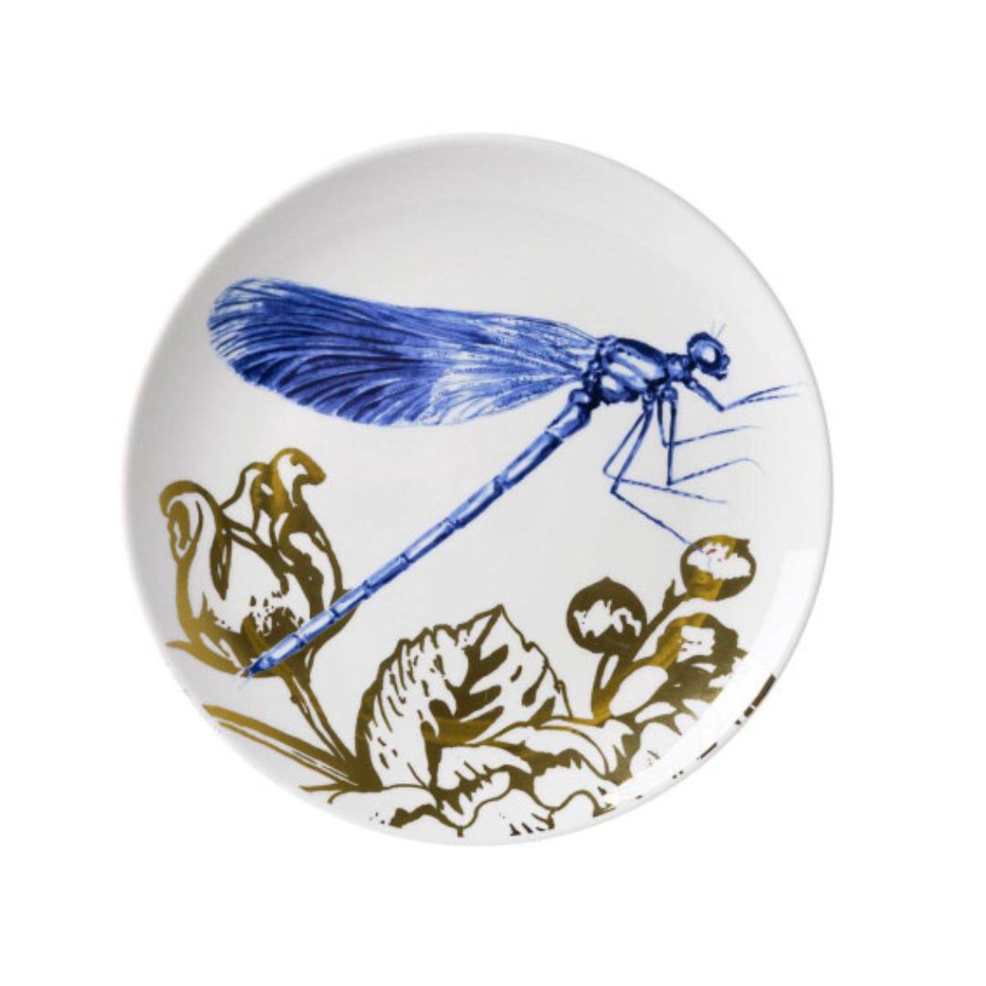 Een heel elegant wandbord gemaakt van schitterend keramiek. Het wandbord is gedecoreerd met subtiele goudaccenten en zeer gedetailleerde Delfts blauwe insecten. Dit wandbord is een eerbetoon aan de vele hard werkende insecten die er in Nederland te vinden zijn. De harde werkers die ervoor zorgen dat bloemen bestoven worden, dat fruit kan groeien, dat tuinafval opgeruimd wordt en dat de grond vruchtbaar blijft. Een opvallende verschijning in de tuin is de libelle. Met zijn schitterende glasachtige vleugels en lange lijf, kan hij je bijna niet ontgaan wanneer hij de tuin in vliegt. Hij rust tussen de gouden bloemen die vol in bloei staan. Deze bijzondere wanddecoratie brengt een zomerse sfeer in huis dankzij de intrigerende insecten die genieten van de ontluikende natuur. De gouden glinstering op het wandbord doet denken aan het weerkaatsen van zonlicht op waterdruppels die op de bloemblaadjes rusten. Combineer het wandbord met andere bijpassende wandborden uit deze collectie, of mix en match het wandbord met leuke andere wanddecoratie met contrasterende stijlen en kleuren. Aan de achterkant van het wandbord zit een ophangsysteem zodat deze eenvoudig aan de muur gehangen kan worden.