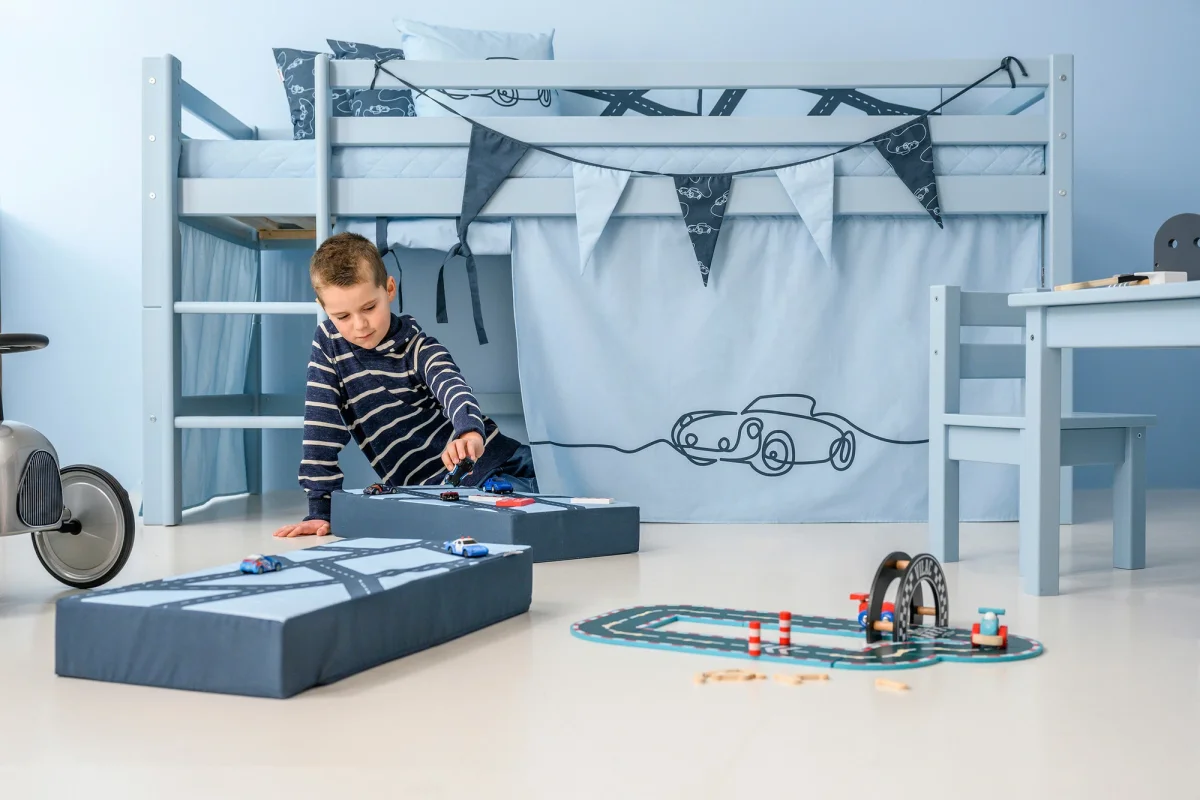 Dit toffe speelgordijn in het thema Cars past op Hoppekids halfhoogslapers en stapelbedden. Geschikt voor bedden met de matrasmaat 90×200.