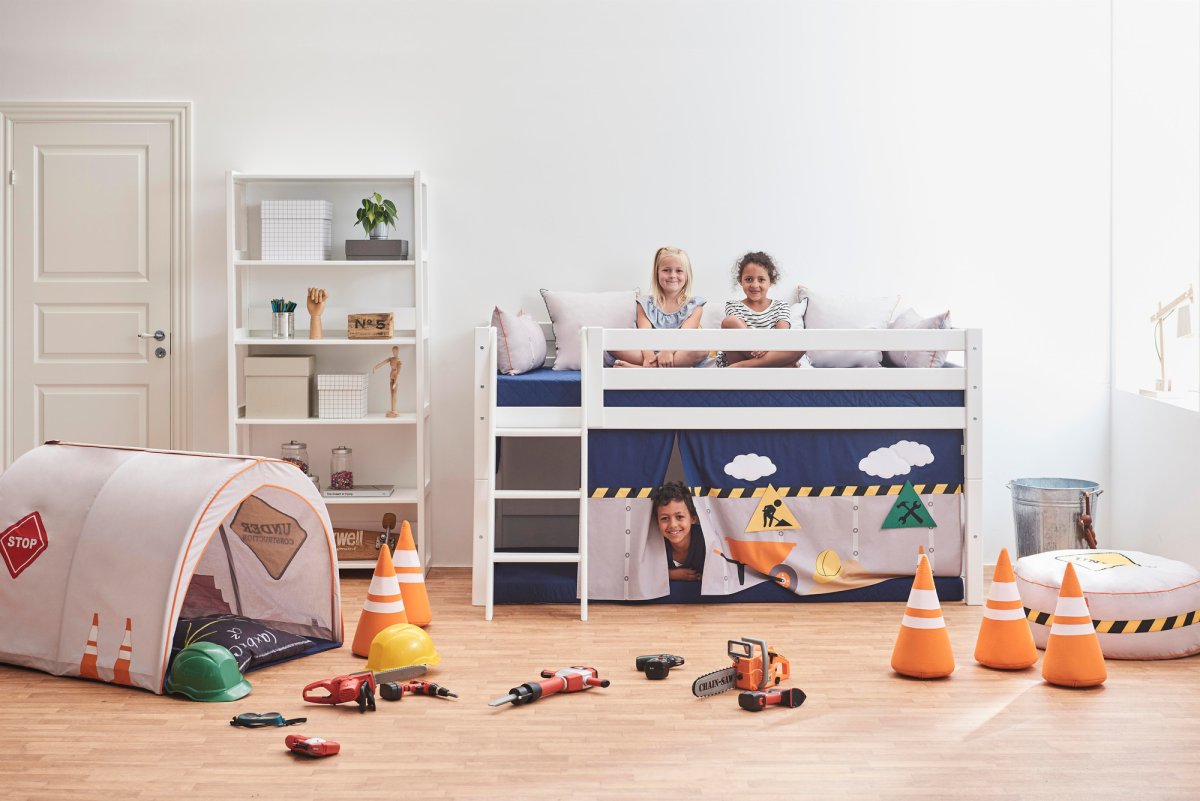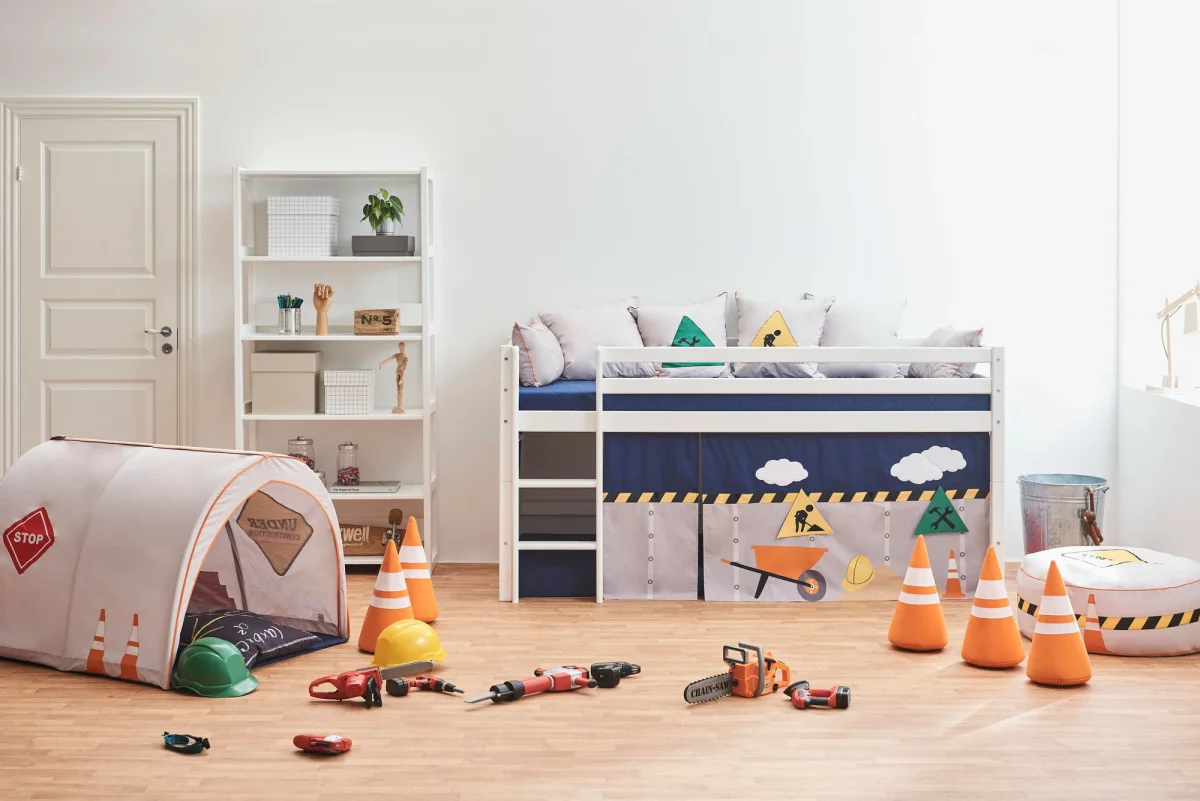 Dit coole speelgordijn in het thema Construction past op Hoppekids halfhoogslapers en stapelbedden. Geschikt voor bedden met de matrasmaat 90×200.