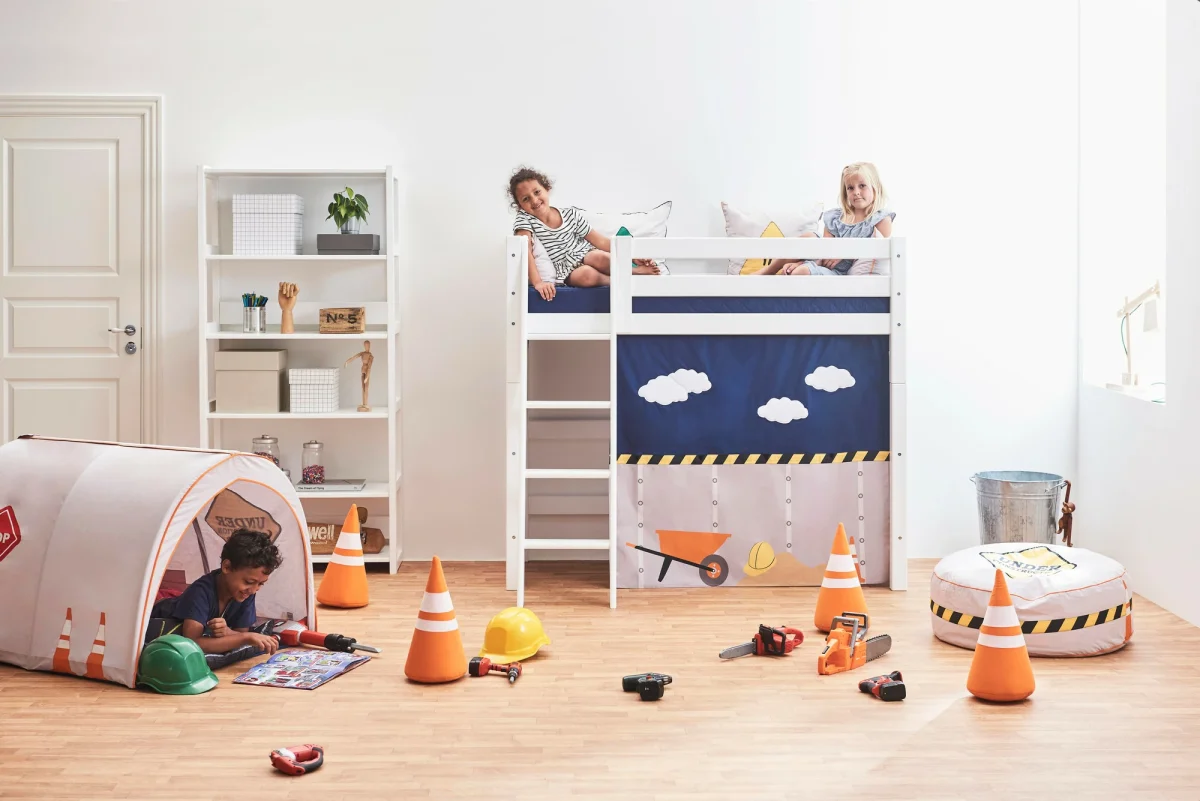 Dit coole speelgordijn in het thema Construction past op Hoppekids verhoogde halfhoogslapers. Geschikt voor bedden met de matrasmaat 70×160.