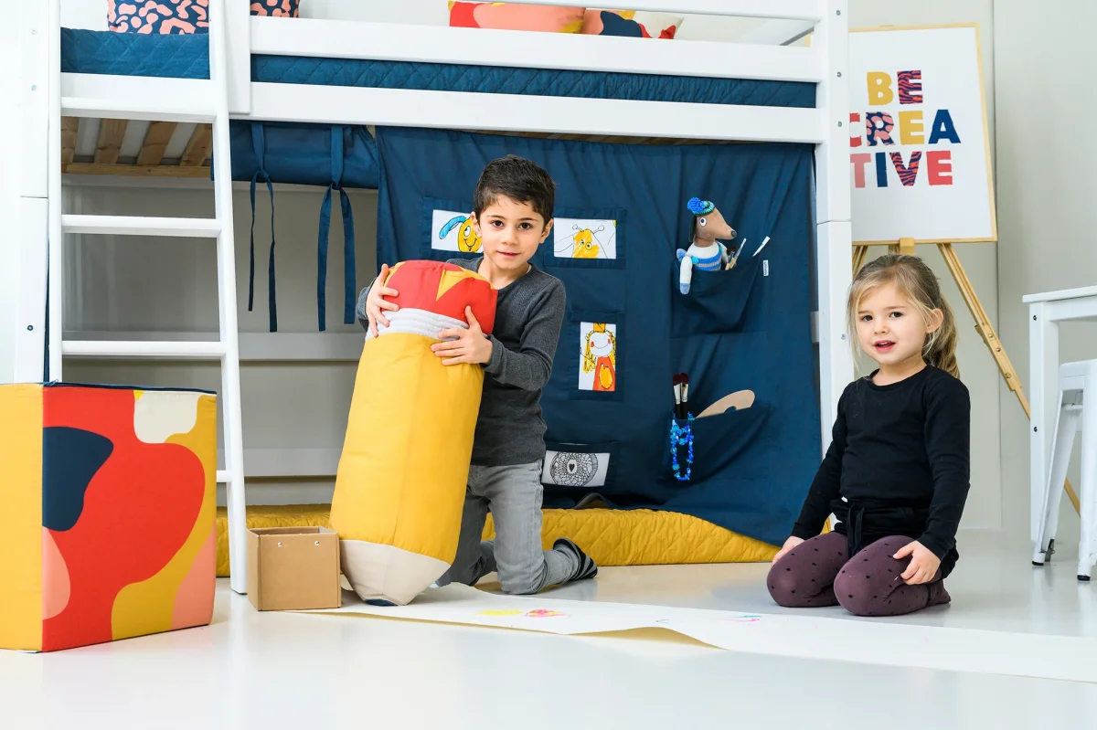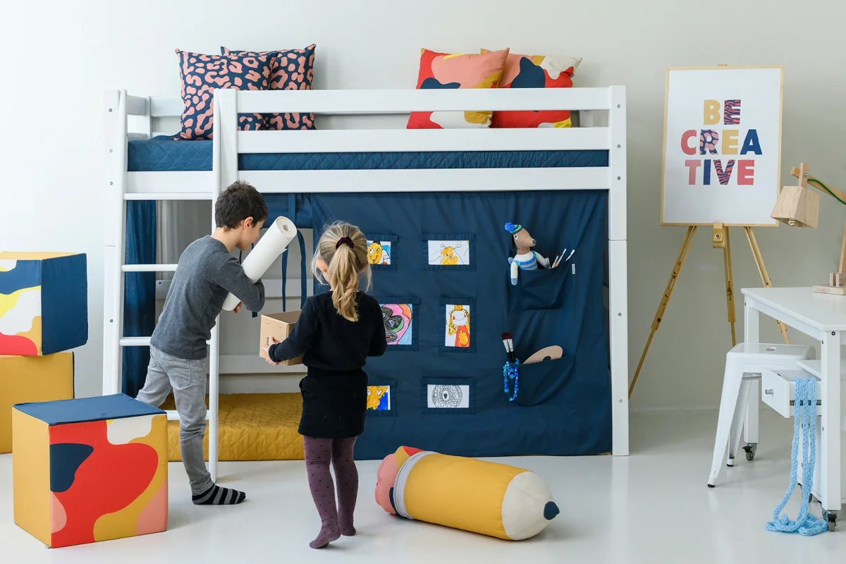 Dit blauwe speelgordijn in het thema Creator past op Hoppekids verhoogde halfhoogslapers. Geschikt voor bedden met de matrasmaat 90×200