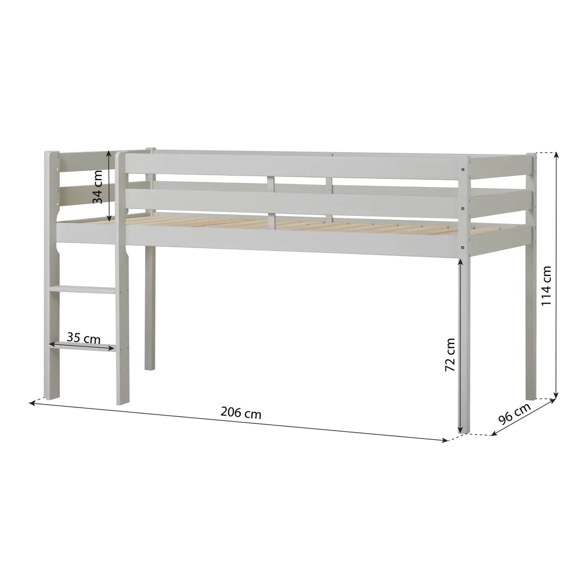 De Hoppekids ECO Comfort halfhoogslaper in de kleur Dove Grey met een matrasmaat van 90×200 cm is ideaal voor kleinere kamers. Gebruik de extra ruimte onder het bed voor opslag of als speelruimte. De hoogte van 72 cm is ideaal, omdat je kind in bed kan klimmen, maar het is niet zo hoog dat het onveilig aanvoelt. Als je een gordijn voor het bed hangt, kun je gezellige grotten of denkbeeldige speelruimtes creëren – decoreer onder het bed met lichten, kussens en dekens en maak de perfecte schuilplaats voor je kind.