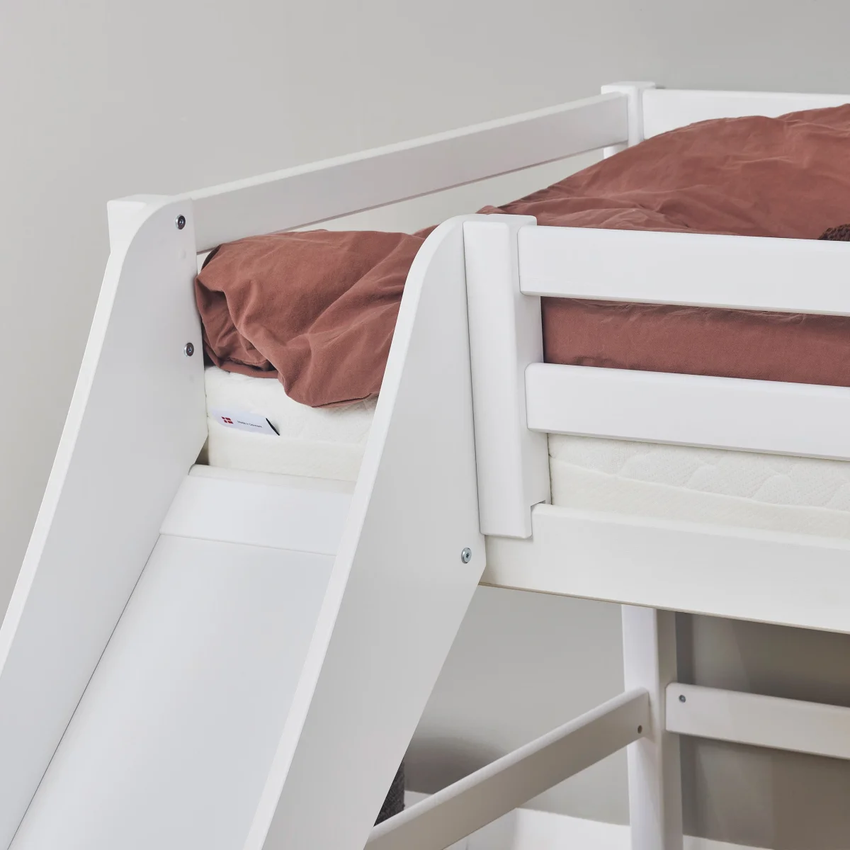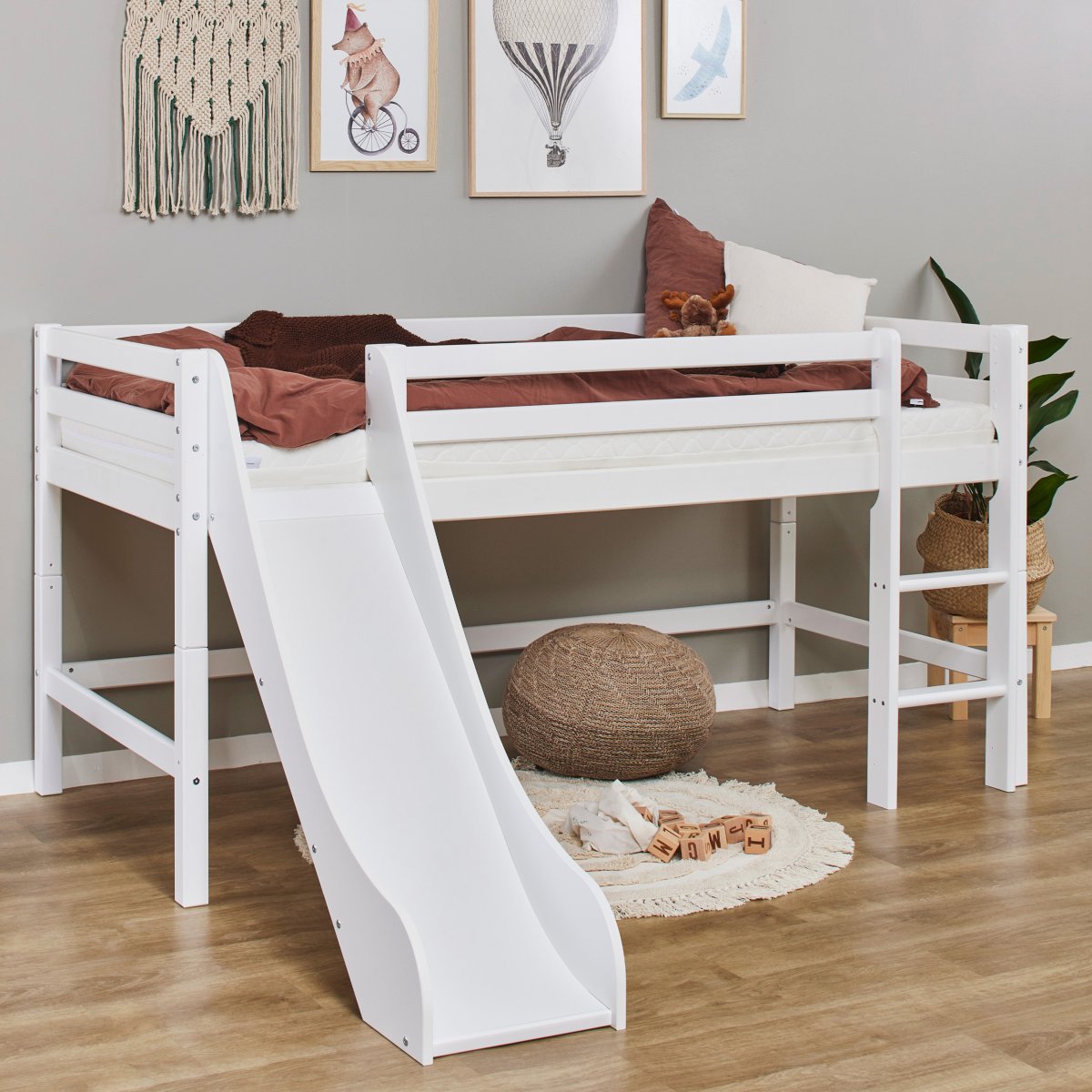 De glijbaan verandert het bed in een leuk speelbed, waardoor het veel gemakkelijker wordt om ’s ochtends op te staan! Zowel de glijbaan als de ladder kunnen aan de linkerkant of rechterkant van het bed worden geplaatst – ze moeten gewoon aan tegenovergestelde uiteinden worden geplaatst.