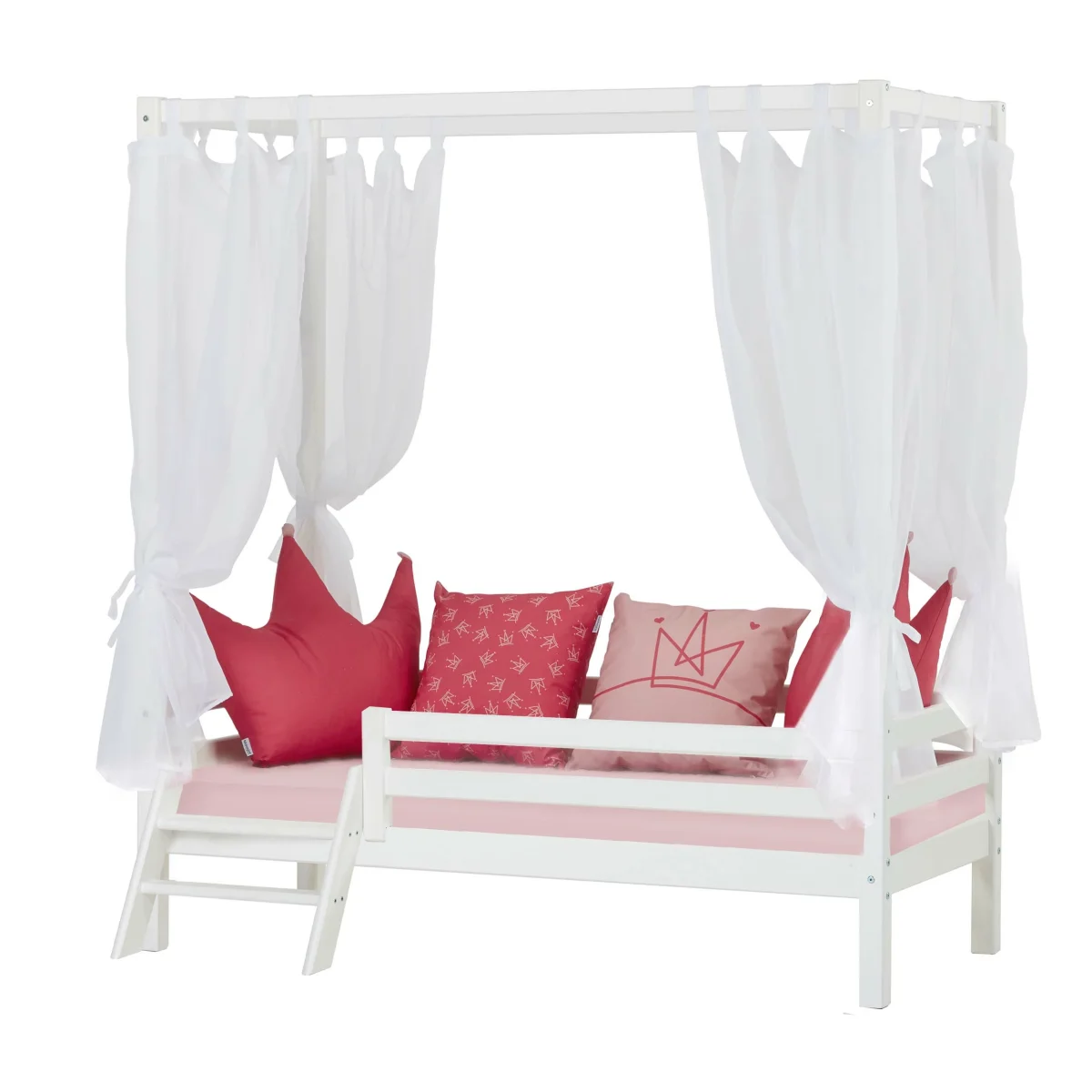 De hemelbedmodule is verwijderbaar, wat betekent dat je het bed kunt veranderen in een normaal juniorbed. Je kunt ook het juniorbed combineren met een module om een halfhoogslaper te creëren. Deze module wordt apart verkocht.
