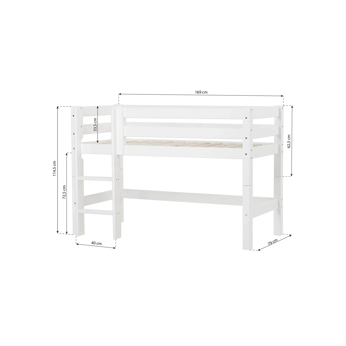 De halfhoogslaper heeft de perfecte hoogte, want er is veel ruimte om te spelen of op te bergen onder het bed, maar het bed kan nog steeds veilig aanvoelen, zelfs voor kleinere kinderen. Het beklimmen van de ladder zal de motoriek trainen en het uitzicht vanaf de top van het bed is meestal favoriet bij kinderen.