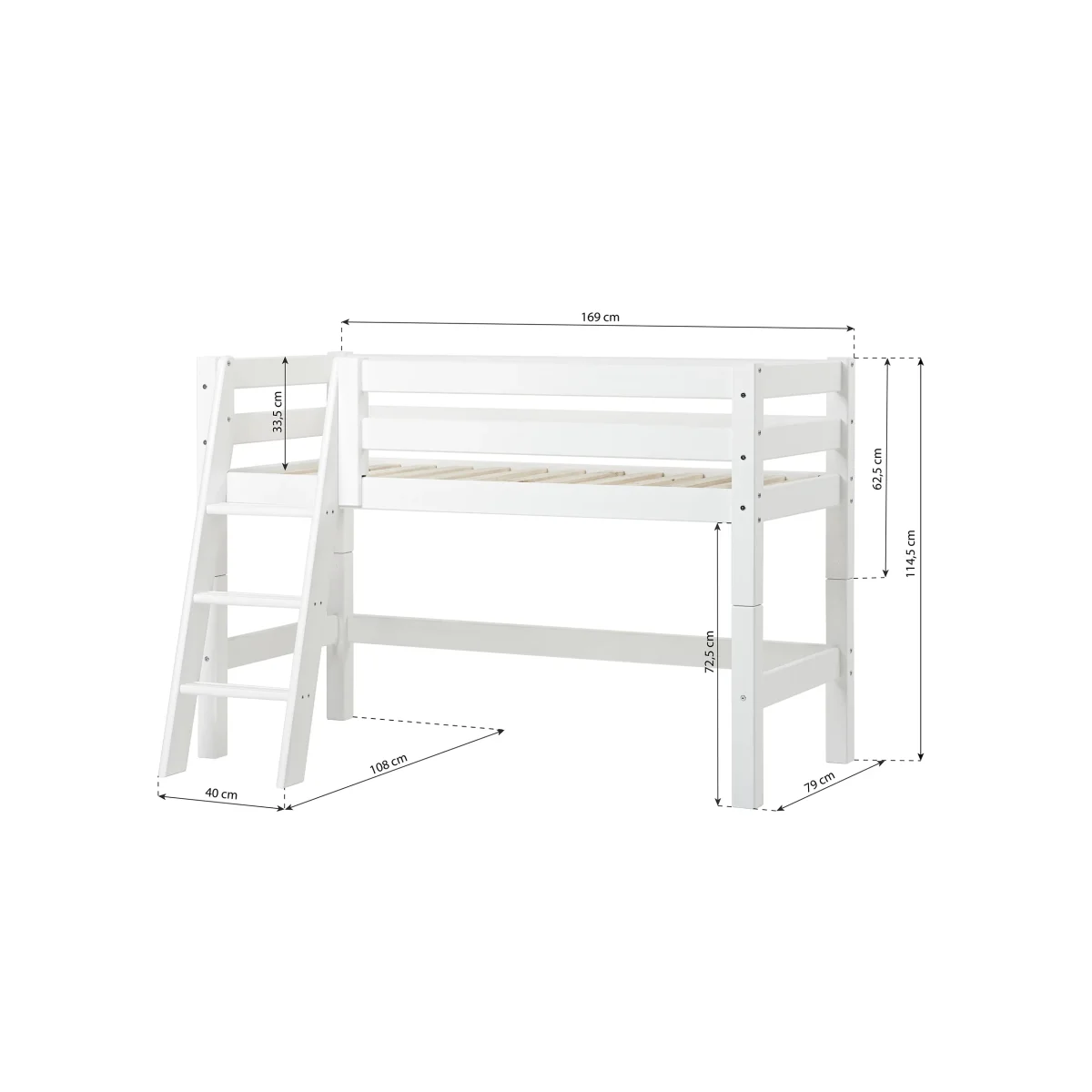 De halfhoogslaper heeft de perfecte hoogte, want er is veel ruimte om te spelen of op te bergen onder het bed, maar het bed kan nog steeds veilig aanvoelen, zelfs voor kleinere kinderen. Het beklimmen van de ladder zal de motoriek trainen en het uitzicht vanaf de top van het bed is meestal favoriet bij kinderen.