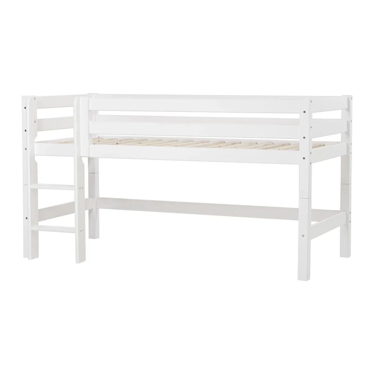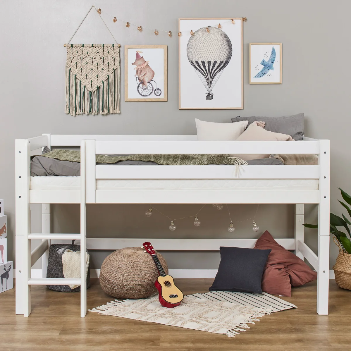 De halfhoogslaper heeft de perfecte hoogte, want er is veel ruimte om te spelen of op te bergen onder het bed, maar het bed kan nog steeds veilig aanvoelen, zelfs voor kleinere kinderen. Het beklimmen van de ladder zal de motoriek trainen en het uitzicht vanaf de top van het bed is meestal favoriet bij kinderen.