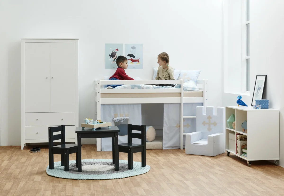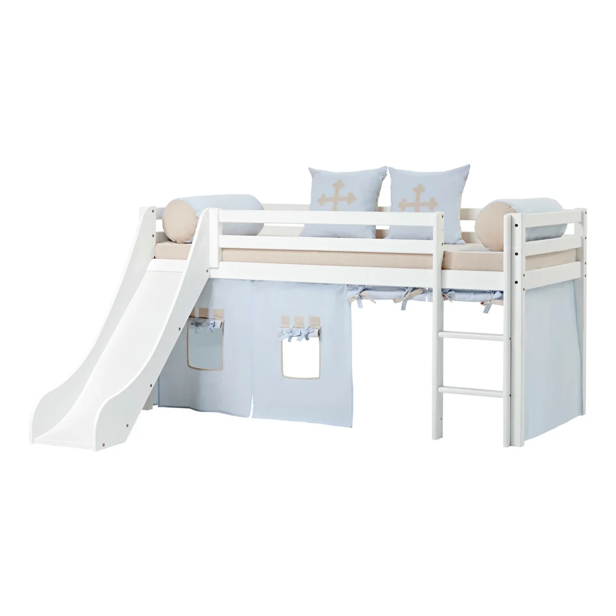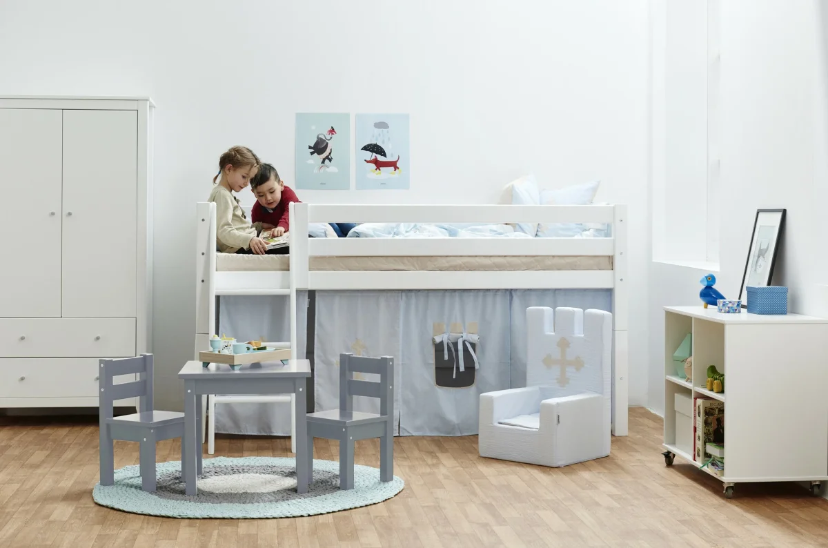 Dit handgenaaide speelgordijn in het thema Fairtytale Knight past op Hoppekids halfhoogslapers en stapelbedden. Geschikt voor bedden met de matrasmaat 90×200