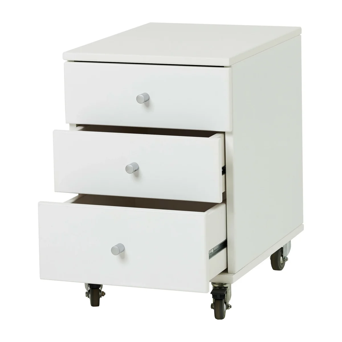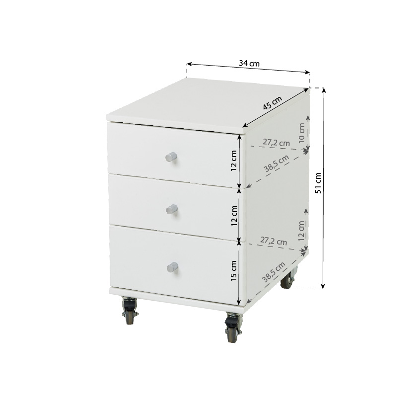 De ladeset heeft drie ruime laden en vergrendelbare wielen. Dit geeft je meer flexibiliteit in de kamer, omdat je de meubels kunt verplaatsen indien nodig.