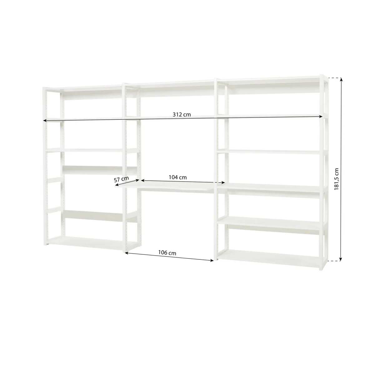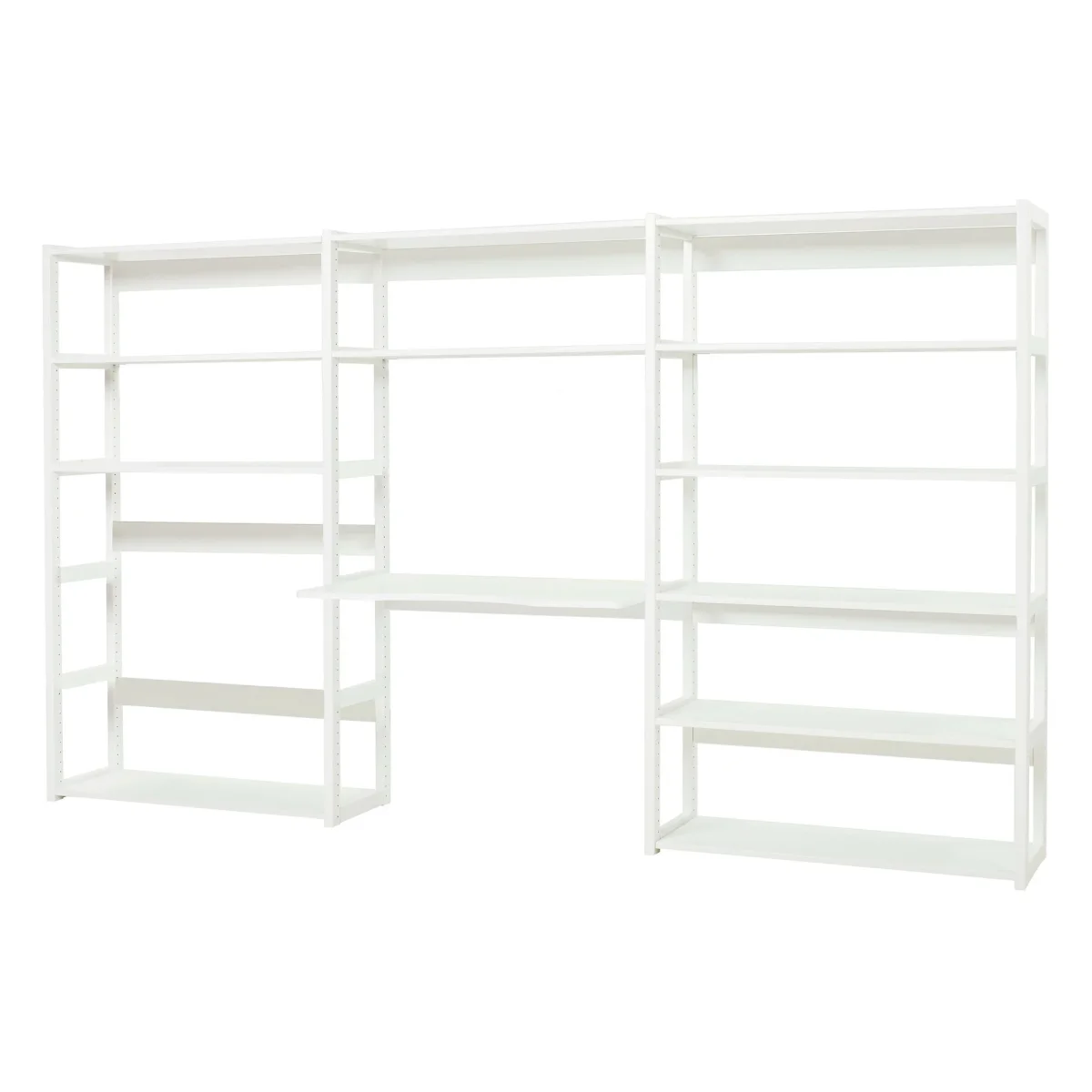 Kast met drie secties met 12 planken en een bureau voor het opbergsysteem STOREY van Hoppekids.