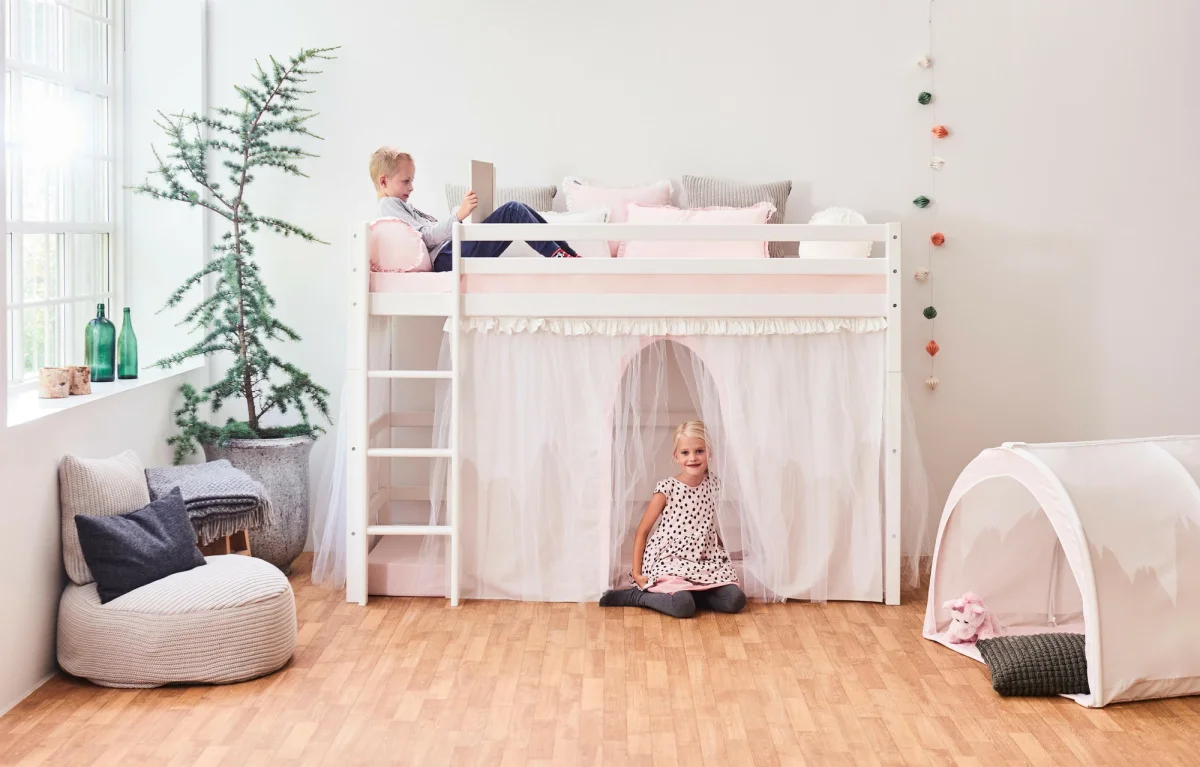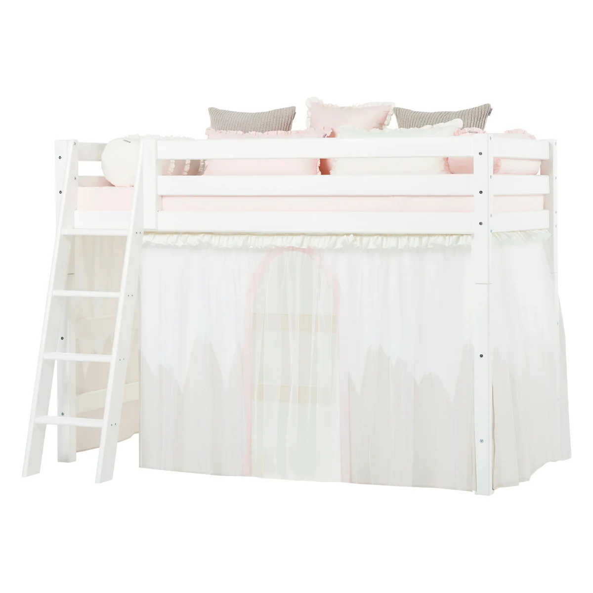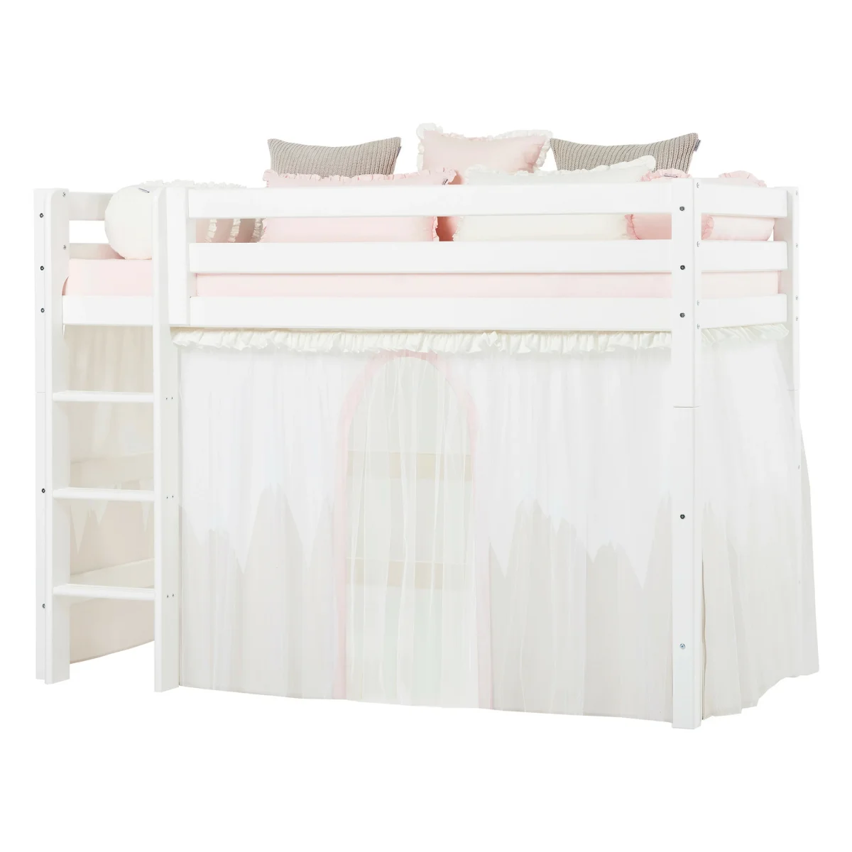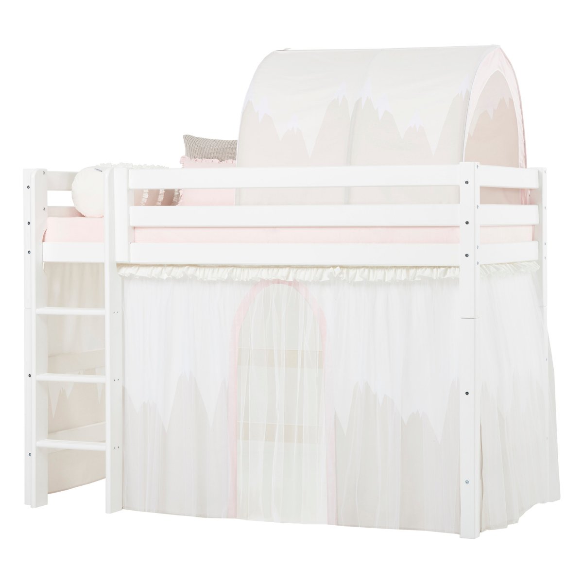 Dit leuke speelgordijn in het thema Winter Wonderland met tule past op Hoppekids verhoogde halfhoogslapers. Geschikt voor bedden met de matrasmaat 90×200