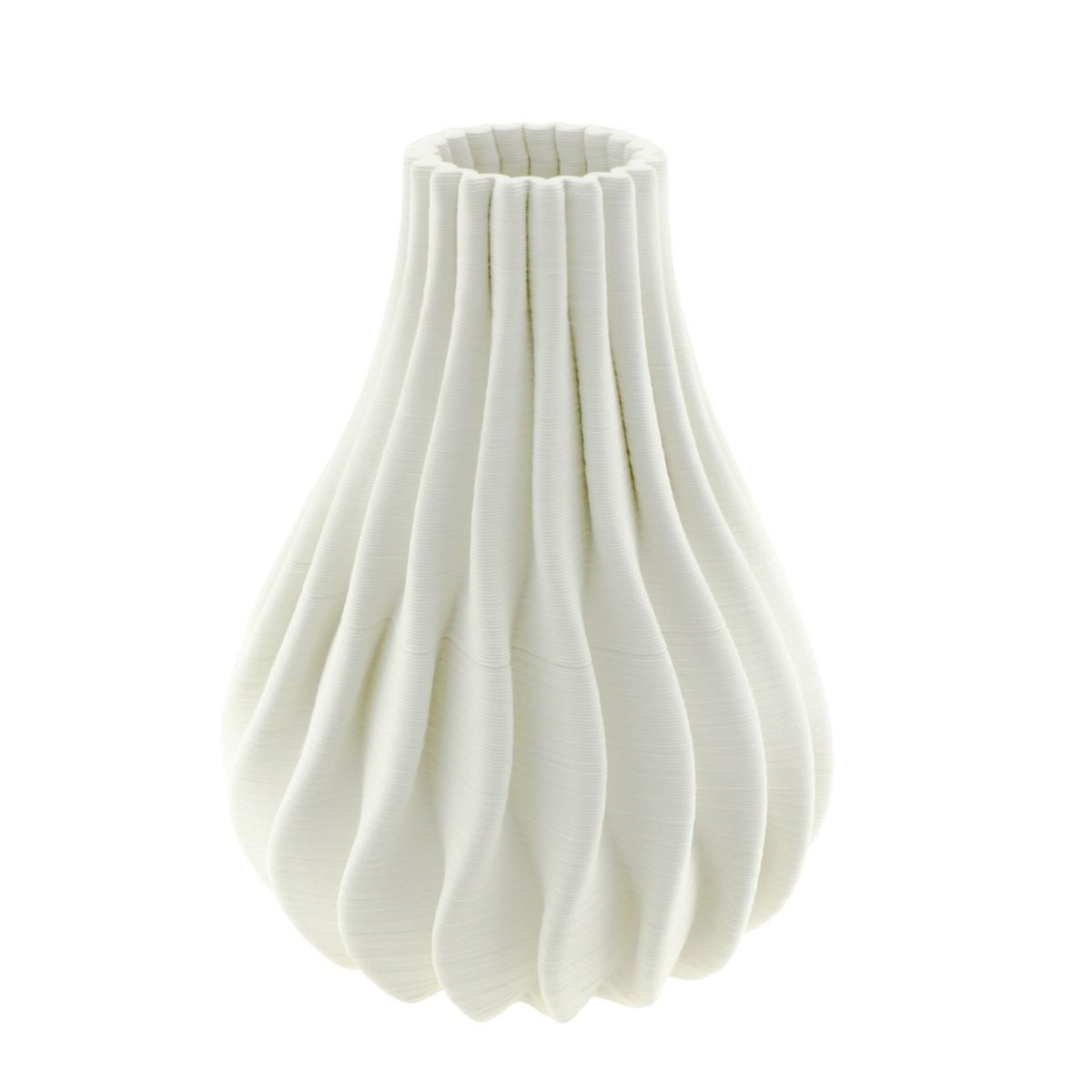 De “Atlantis Sandy”. Deze 3D-geprinte porseleinen vaas maakt deel uit van de gelimiteerde “Atlantis Collection” en is geïnspireerd op de mythische onderwaterstad Atlantis. Elke vaas is een eerbetoon aan de schoonheid van de oceaan en omvat de essentie van de zee en haar betoverende, verborgen wonderen. De collectie combineert de organische elegantie van het zeeleven met de innovatie van 3D-printing en biedt een moderne kijk op eeuwenoude oceanische schoonheid. De vaas is aan de binnenzijde geglazuurd dus geschikt voor een bos bloemen