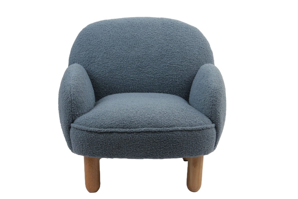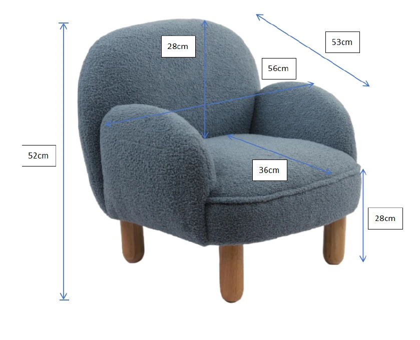 De kinderfauteuil uit de ROCKY collectie in blauw bouclé is een perfecte mix van comfort en stijl. Dankzij de zachte stof en de afgeronde vormen voelt het stoeltje warm en uitnodigend aan. Het biedt een knusse plek waar je kindje kan lezen, ontspannen of gewoon even wegdromen. De stevige houten poten geven het stoeltje stabiliteit en een natuurlijke uitstraling. Met zijn charmante design is deze fauteuil een sfeervolle toevoeging aan de baby- of kinderkamer, maar ook een leuke blikvanger in de woonkamer. Zo heeft je kleintje altijd een eigen comfortabele plek.