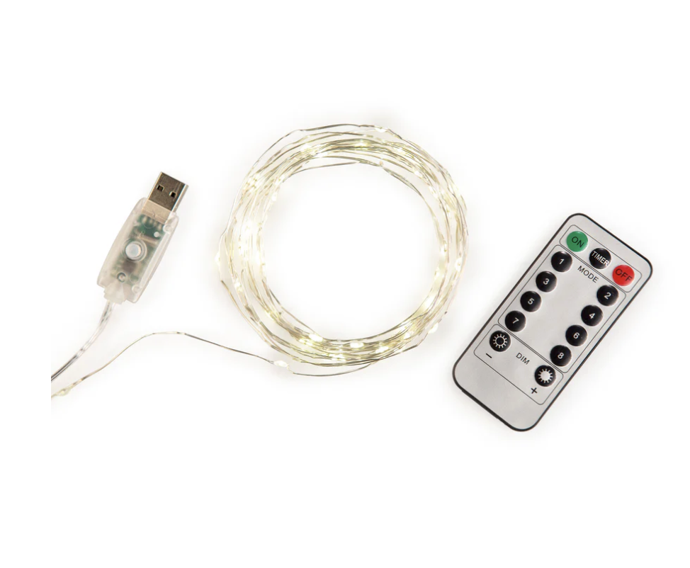 String lights met afstandsbediening (10 meter) van Kikkerland. Koperen lichtslinger met fairy lights van maar liefst tien meter lang. Is voorzien van tientallen ledlampjes in warmwitte kleur. De fairy lights lichtslinger werkt via USB, zoals via de laptop of een USB-adapter. De Fairy light lichtslinger heeft acht verschillende standen en wordt geleverd met een afstandsbediening.