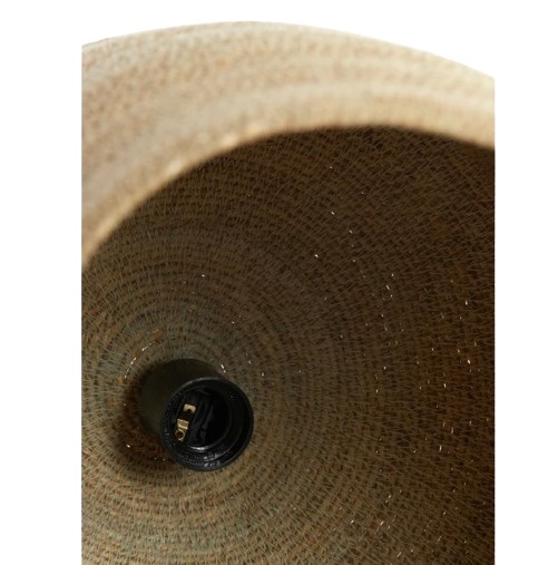 Prachtige lampenkap gemaakt van zeegras met ambachtelijke uitstraling. De bovenkant is het zeegras zandkleurig. Inclusief fitting en snoer. De lamp is eventueel dimbaar.