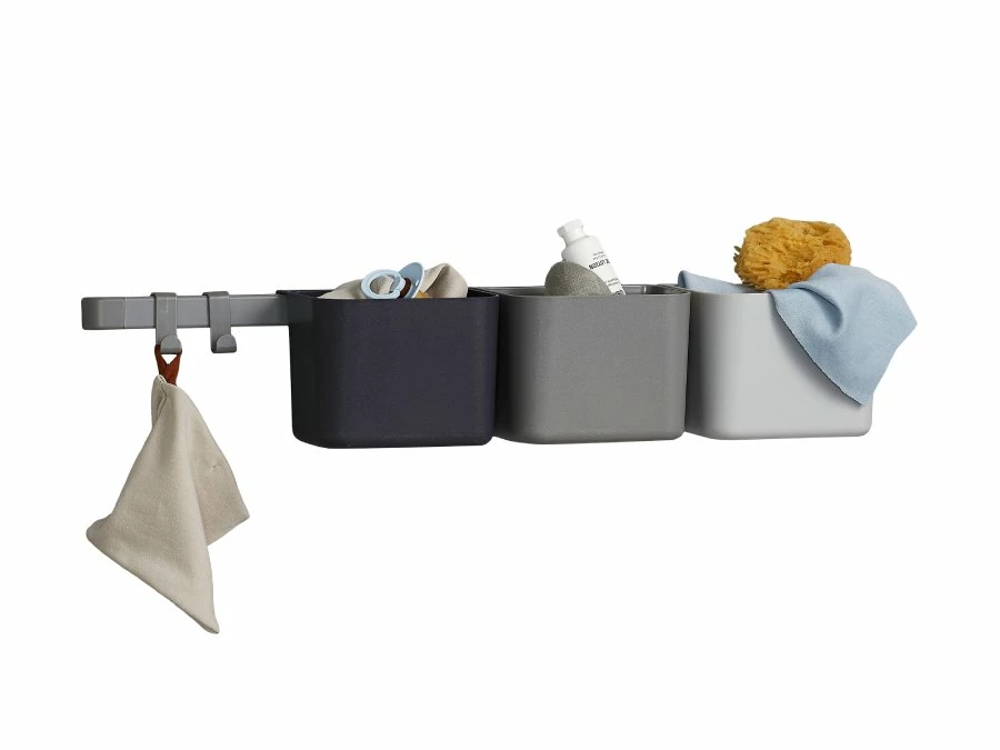 Hou de kamer van je kind netjes en opgeruimd met deze slimme organizer bakjes van Leander. Hang de lange rail op aan de muur boven de commode of in een Leander Classic of Luna kledingkast. Aan de rail kun je de 2 haakjes en 3 bakjes hangen op de manier zoals jij wilt. De bakjes komen in drie mooie Dusty Grey kleuren.