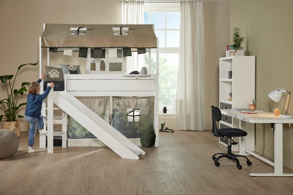 Combineer je Panda Paradise stoffen dak met deze knusse Panda Paradise achterwand. Bevestig de achterwand eenvoudig aan het dak met stevige klittenbandverbindingen en stap in een wereld van aardse en groene tinten. Bedtijd wordt zo iets om naar uit te kijken. Breid het Panda Paradise thema uit met de handige opbergwand en andere accessoires uit de LIFETIME accessoirecollectie. LIFETIME textiel helpt je een speelse omgeving te creëren waar elk kind graag speelt en ontspant.