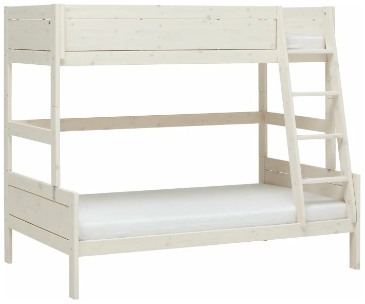 Het Lifetime familie stapelbed 90/120 whitewash is een prachtige manier om een kamer met je kind te delen. Jullie onderin en je kind erboven. Natuurlijk kunnen er ook twee kids in slapen. Het bovenste bed heeft een matras van 90×200 en de onderste 120×200. Standaard krijg je bij dit twee luxe lattenbodems. De ladder is zowel links als rechts te plaatsen. Ditzelfde bed is ook beschikbaar met een onderbed van 140 breed of met een trapkast voor extra opbergruimte. Bekijk hier alle Lifetime stapelbedden.