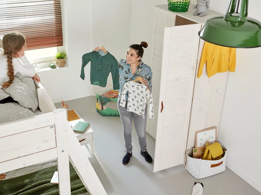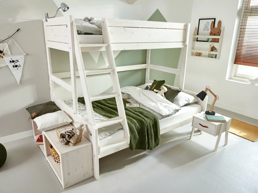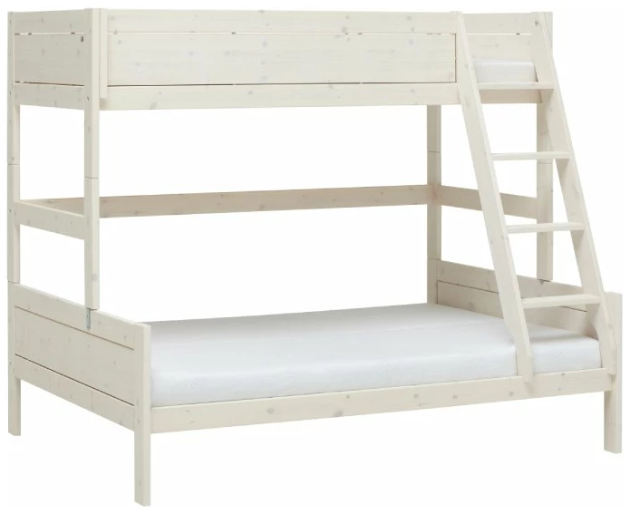 Het Lifetime familie stapelbed 90/140 whitewash is een prachtige manier om een kamer met je kind te delen. Jullie onderin en je kind erboven. Natuurlijk kunnen er ook twee kids in slapen. Het bovenste bed heeft een matras van 90×200 en de onderste 140×200. Standaard krijg je bij dit twee luxe lattenbodems. De ladder is zowel links als rechts te plaatsen. Ditzelfde bed is ook beschikbaar met een onderbed van 120 breed of met een trapkast voor extra opbergruimte. Bekijk hier alle Lifetime stapelbedden.