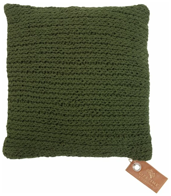 Super zacht kussen met een gehaakte kant in een mooie groene kleur. De afmeting is 45 bij 45.