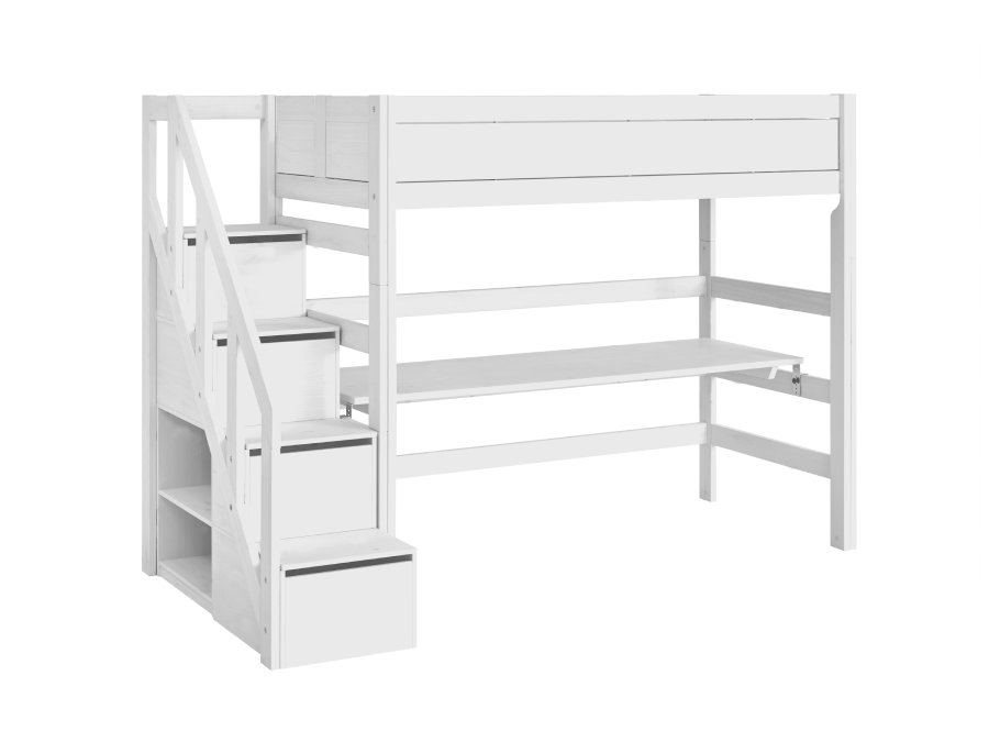 Deze Lifetime hoogslaper van 177 cm hoogte met trapkast in de kleur wit zal prachtig staan in de kamer van jullie kind. Een hoogslaper is ideaal voor als je minder ruimte hebt. Door de ruimte onder het bed goed te benutten kun je er spelen, studeren of extra opbergruimte creëren. Zo is er bijvoorbeeld een bureaublad voor deze hoogslaper beschikbaar. Deze zit er dus niet standaard bij. Door de trapkast creëer je gelijk een hoop opbergruimte voor speelgoed of andere spulletjes. Het bed is gemaakt van FSC gecertificeerd grenenhout in Denemarken. Het bed is afgewerkt met milieuvriendelijke lak en in dit geval dus in dekkend wit. Dit zorgt ervoor dat jullie jarenlang kunnen genieten van een prachtig bed.