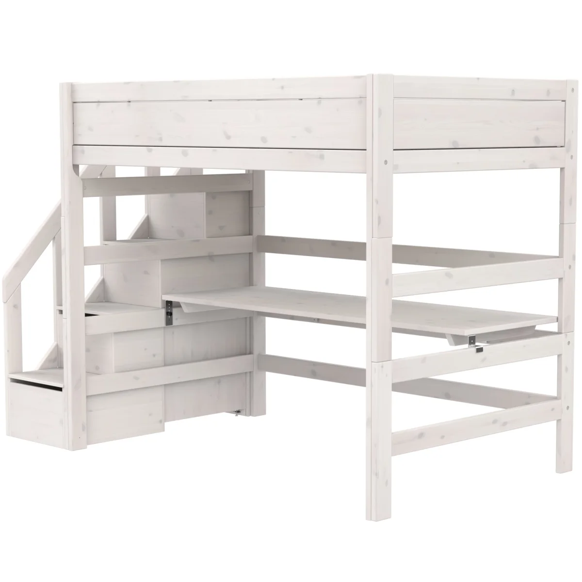 De Lifetime Original hoogslaper van 177 cm hoog met trapkast is afgewerkt met whitewash lak. Dit bed is de ideale keuze als je het bed lange tijd wil gebruiken. Door te kiezen voor een matrasmaat van 120×200 kan het bed zelfs mee verhuizen naar de studentenkamer. Als je kind de hoogslaper zat is kun je de poten verwijderen en het gebruiken als gewoon bed. De handige trapkast zorgt voor een hoop opbergruimte. Deze is ook opzichzelfstaand te gebruiken als je het bed gaat ombouwen.