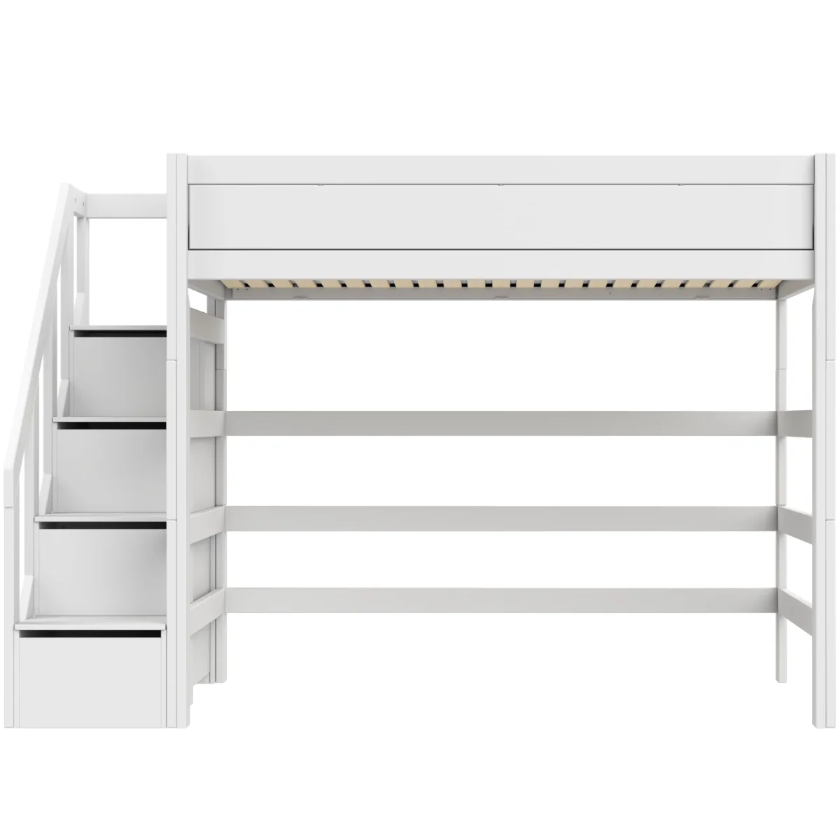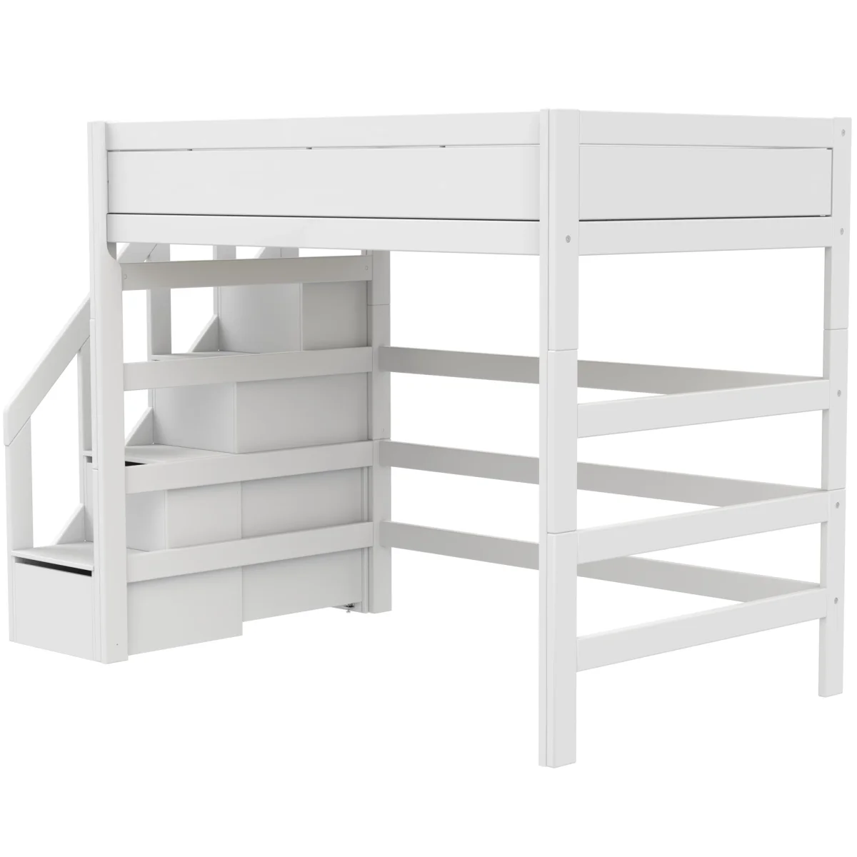 De Lifetime Original hoogslaper van 177 cm hoog met trapkast is afgewerkt met witte lak. Dit bed is de ideale keuze als je het bed lange tijd wil gebruiken. Door te kiezen voor een matrasmaat van 120×200 kan het bed zelfs mee verhuizen naar de studentenkamer. Als je kind de hoogslaper zat is kun je de poten verwijderen en het gebruiken als gewoon bed. De handige trapkast zorgt voor een hoop opbergruimte. Deze is ook opzichzelfstaand te gebruiken als je het bed gaat ombouwen.