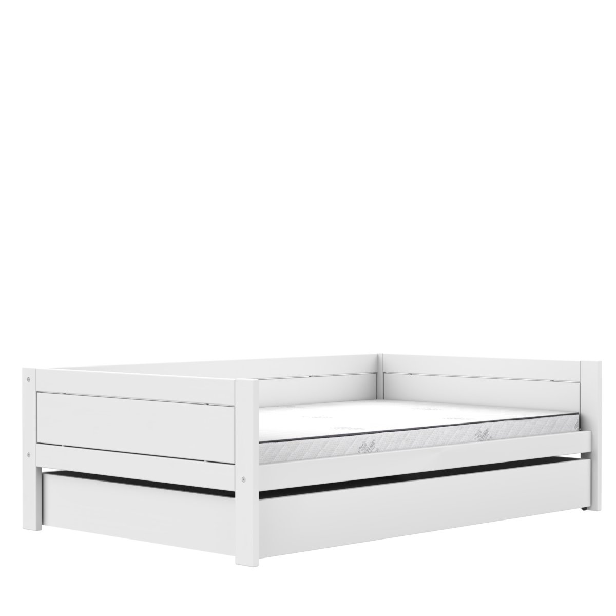 De Lifetime Original bedbank met grote lade van 120×200 in de kleur wit gelakt is perfect als je kind toe is aan een groter bed en je de ruimte onder het bed optimaal wilt benutten. Door de matrasmaat is het bed zelfs nog in de studententijd te gebruiken. Uiteraard is dit bed ook om te bouwen naar andere type bedden zoals een (half)hoogslaper of stapelbed.