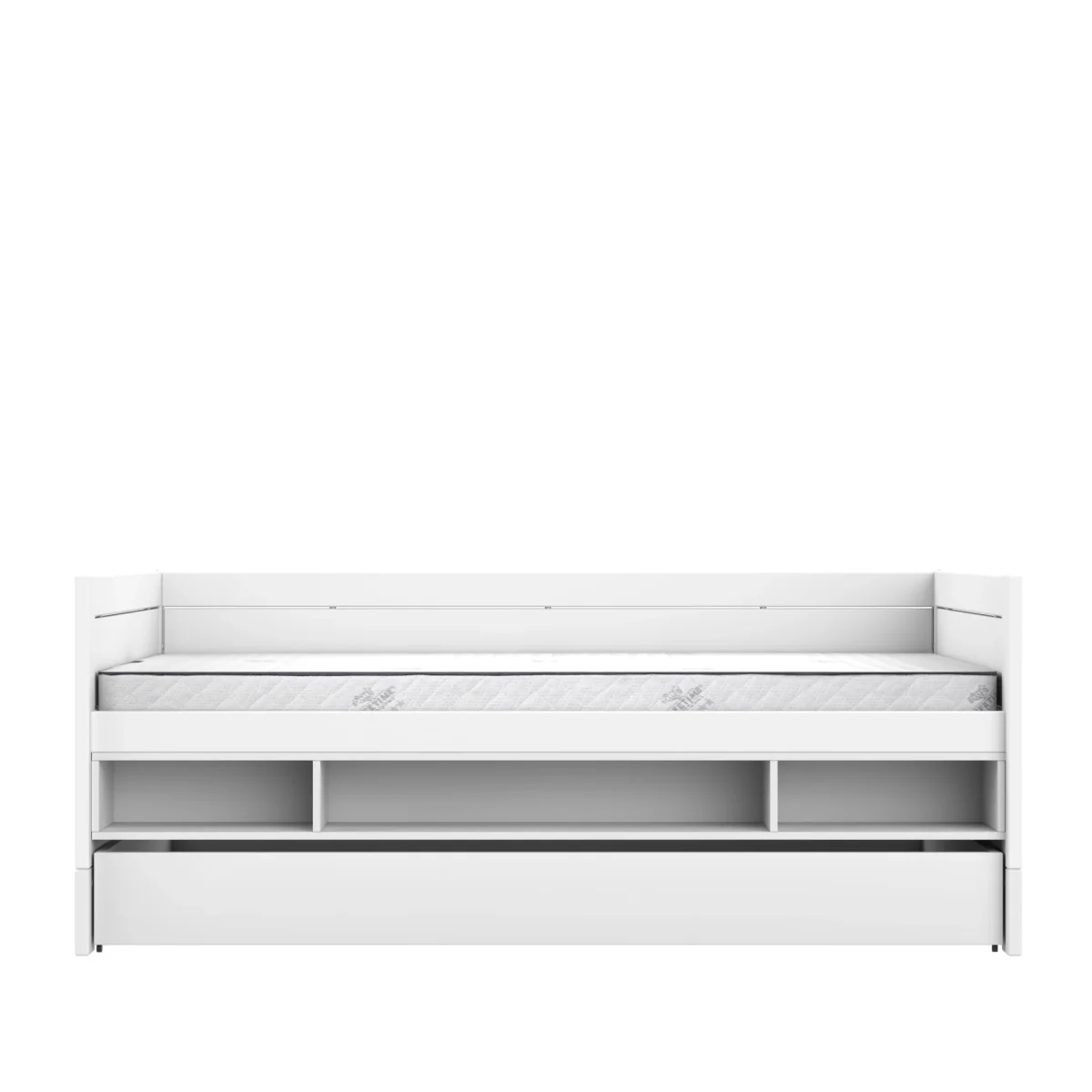 De Lifetime Original bedbank met boekenvak en bedlade in de kleur wit gelakt is perfect als je kind toe is aan een groter bed en je de ruimte onder het bed optimaal wilt benutten. Onder het bed zit een boekenval waar je spulletjes kunt opbergen en een logeerbed zodat je altijd een slaapplek gereed hebt. Door te kiezen voor een matrasmaat van 120×200 kan het bed zelfs meegroeien tot aan de studententijd. Uiteraard is dit bed ook om te bouwen naar andere type bedden zoals een (half)hoogslaper of stapelbed.
