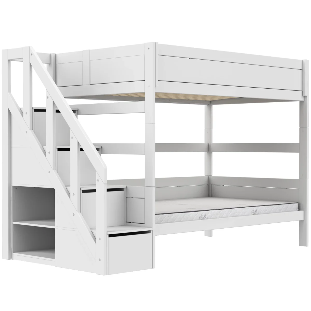 Het Lifetime Original stapelbed in de kleur wit egelakt met een matrasmaat van 120×200 is ideaal voor mensen die op zoek zijn naar een ruimtebesparende oplossing voor meerdere slaapplekken. In theorie zouden er 4 personen in dit bed kunnen slapen. Door de handige trapkast heb je direct extra veel opbergruimte ter beschikking. Wanneer het stapelbed niet meer nodig is, kunnen er twee twijfelaars van gemaakt worden.