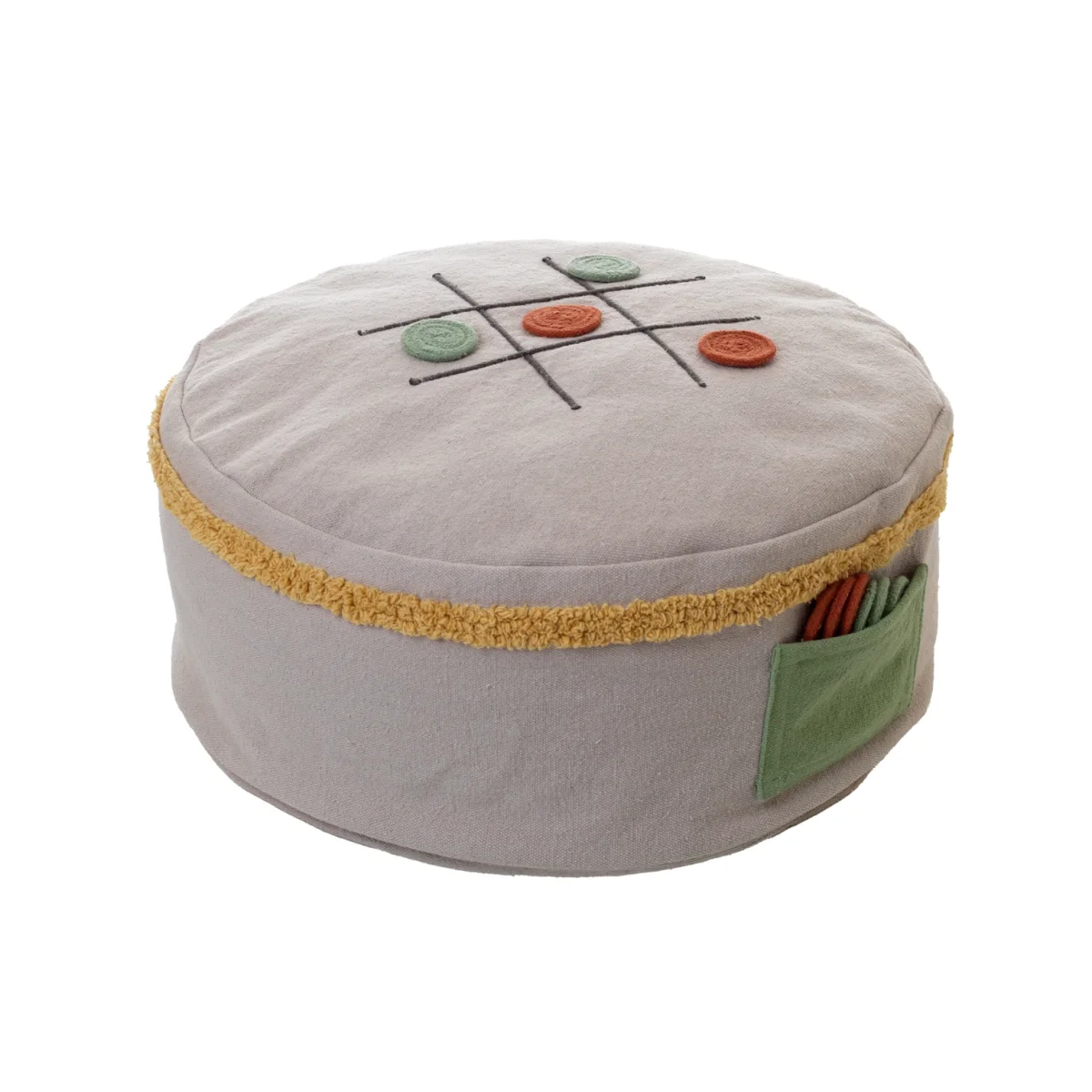 Deze ronde poef uit het Olympic Dreams thema is een speels accessoire dat kan worden gebruikt om op te zitten, te loungen of om kruis-en-nulletje mee te spelen. Het helpt kinderen hun evenwicht te oefenen en hun motorische vaardigheden te verbeteren.