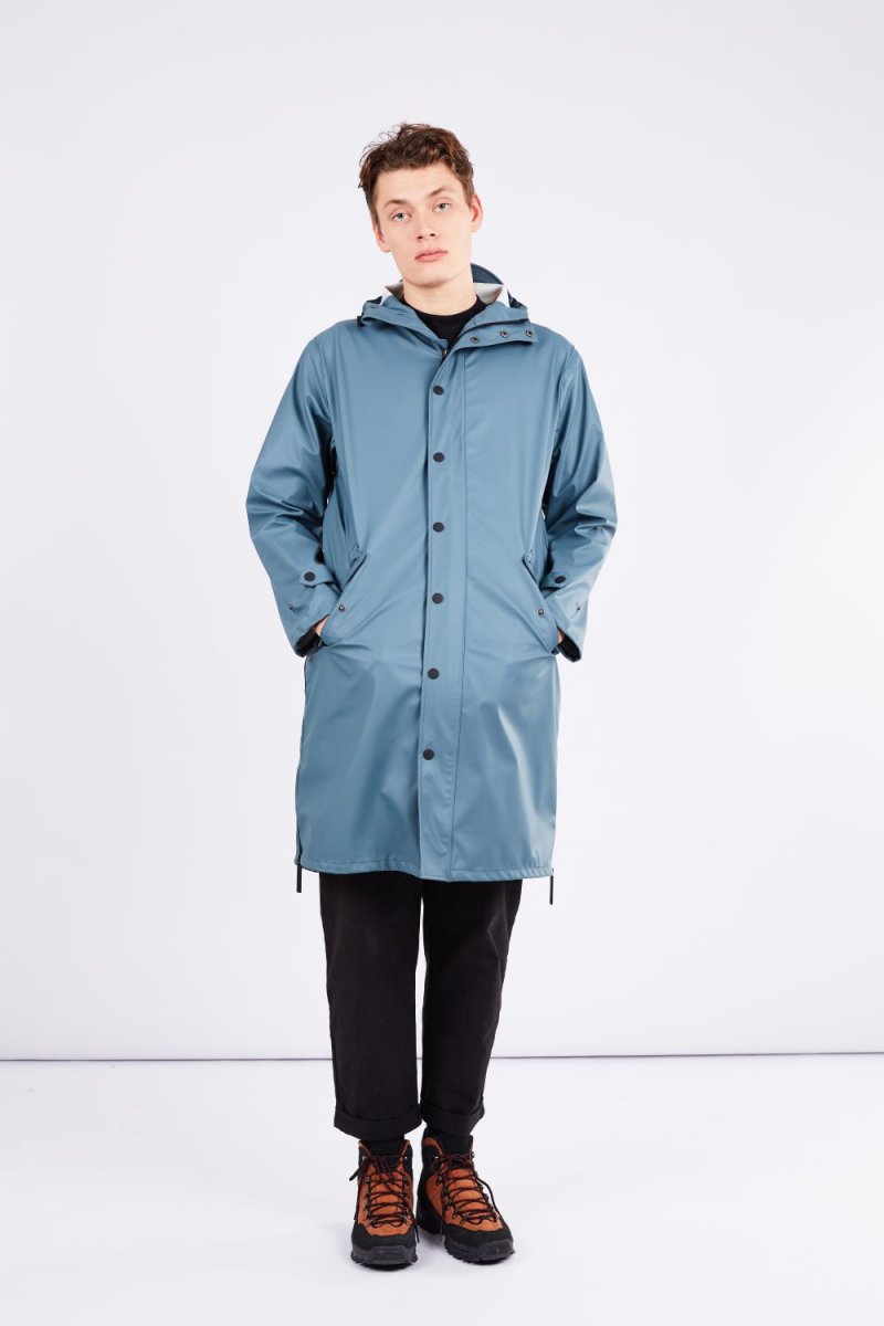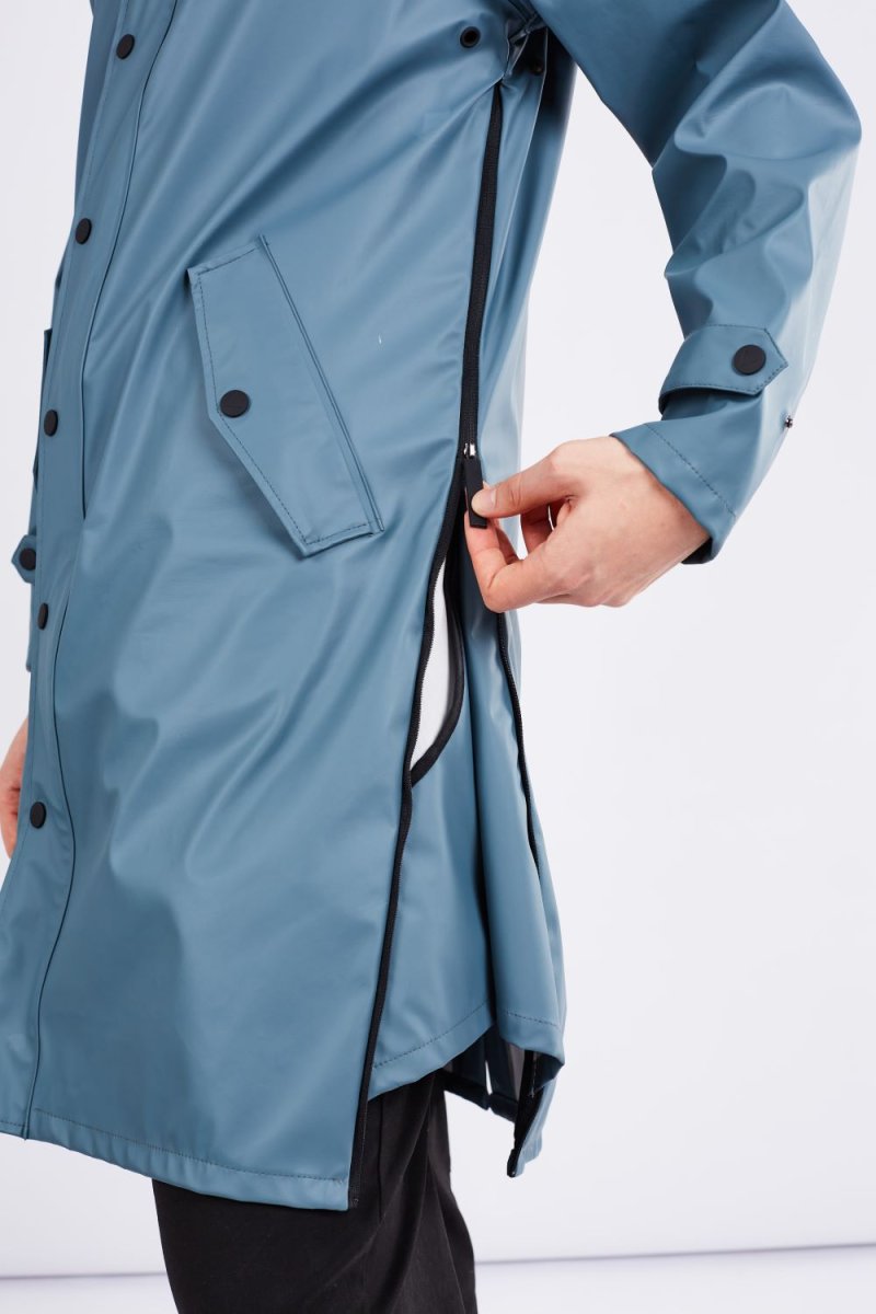 Maium Original regenjas in blue grey, mooie kleur blauw grijs. Stijlvol, innovatief , waterdicht en duurzaam. De jas is gemaakt van 66 pet flessen. Een regenjas voor dames en heren, die aan de zijkanten eenvoudig open geritst kan worden tot een poncho, door het gebruik van de kenmerkende Maium ritsen. Ideaal voor op de fiets , voor wandelen in het bos of voor de stad. Kortom draag je Maium regenjas gewoon iedere dag. Maium rainwear from Amsterdam en dat is te zien!
