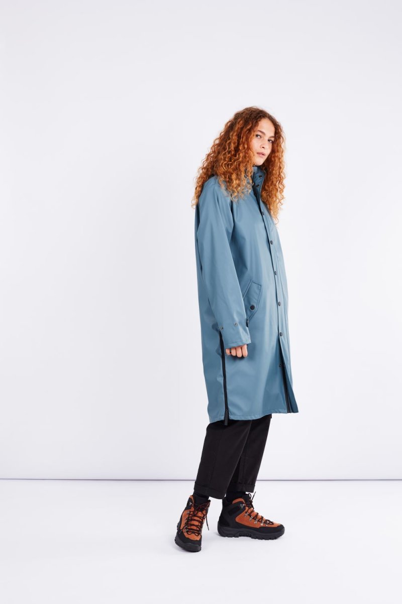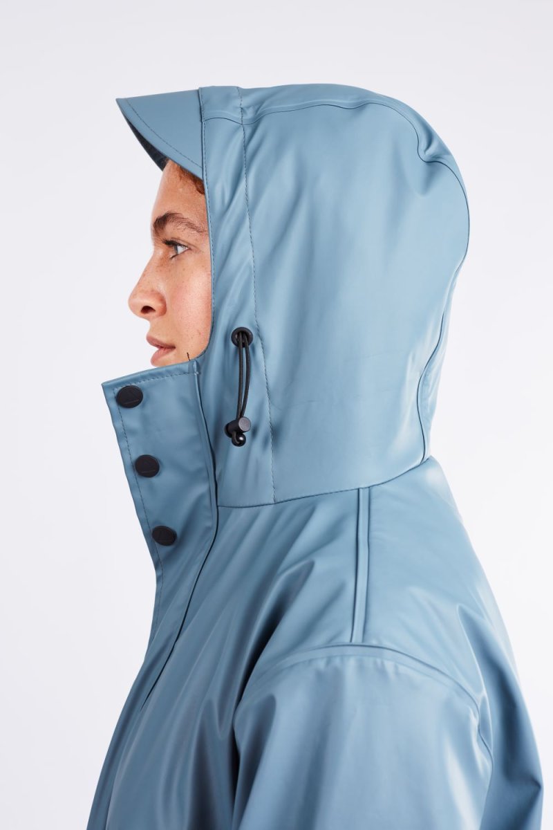 Maium Original regenjas in blue grey, mooie kleur blauw grijs.  Stijlvol, innovatief , waterdicht en duurzaam. De jas is  gemaakt  van 66 pet flessen.  Een regenjas voor  dames en heren, die aan de zijkanten eenvoudig open geritst kan worden tot een poncho, door het gebruik van de kenmerkende Maium ritsen. Ideaal voor op de fiets , voor wandelen in het  bos of voor de stad. Kortom draag je Maium regenjas gewoon iedere dag. Maium rainwear from Amsterdam en dat is te zien!